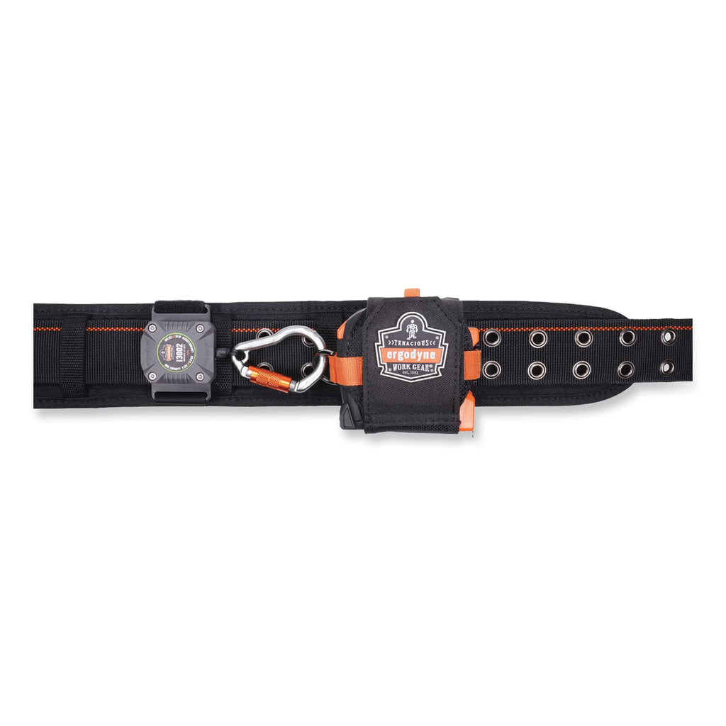 - Metal-frame, fixed-web belt/harness attachment with hook-and-loop backing for anchoring the lanyard to belt and harness straps up to 3 wide.