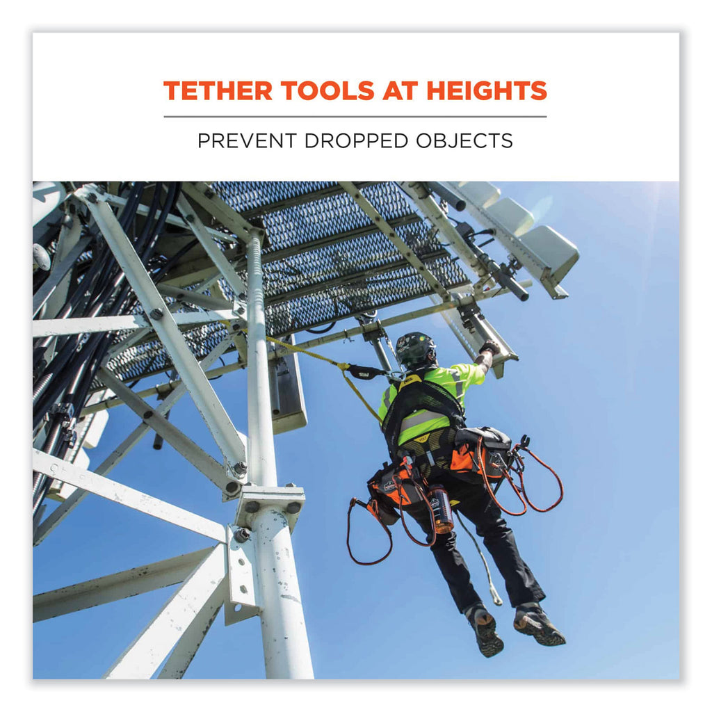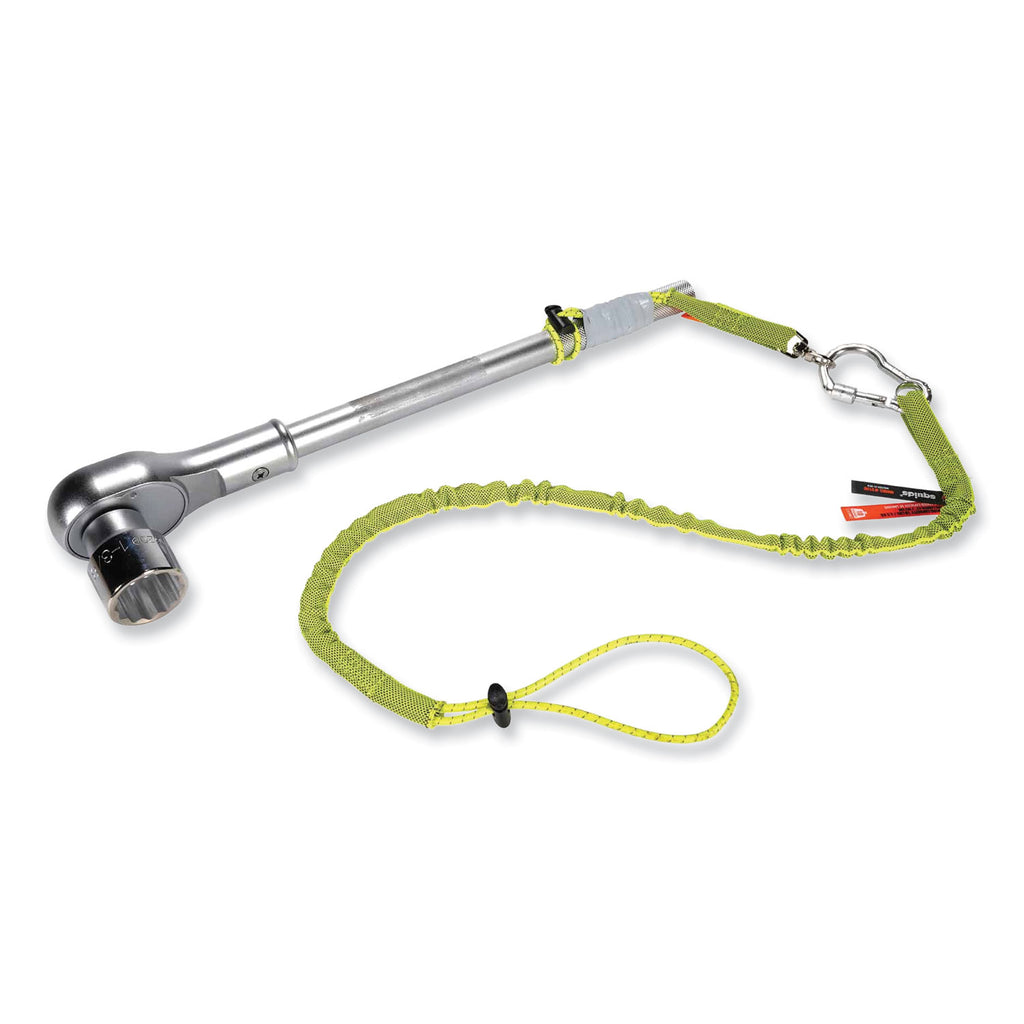 Shock-absorbing cord with tubular-nylon webbing and lock-stitching features a single-action, aluminum carabiner with captive eye on one end and a cinch-loop on the other to tether tools, minimizing the potential for dangerous tool-drops to improve overall workplace safety. Third-party certified to a 10 lb maximum working capacity with a 2:1 safety factor.