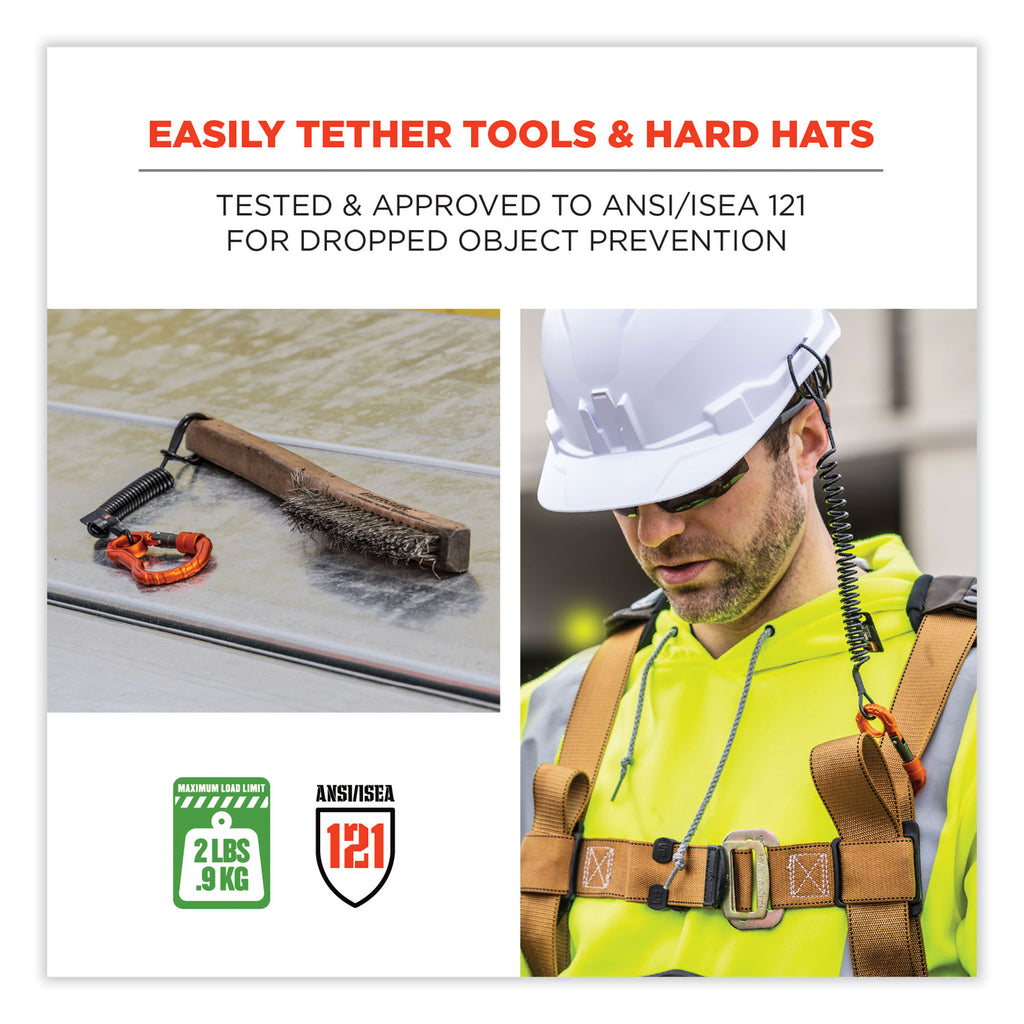 - Flexible loop end connects to a tool's captive-hole eyelet, various retrofit attachment points and hard-hat accessory slots.