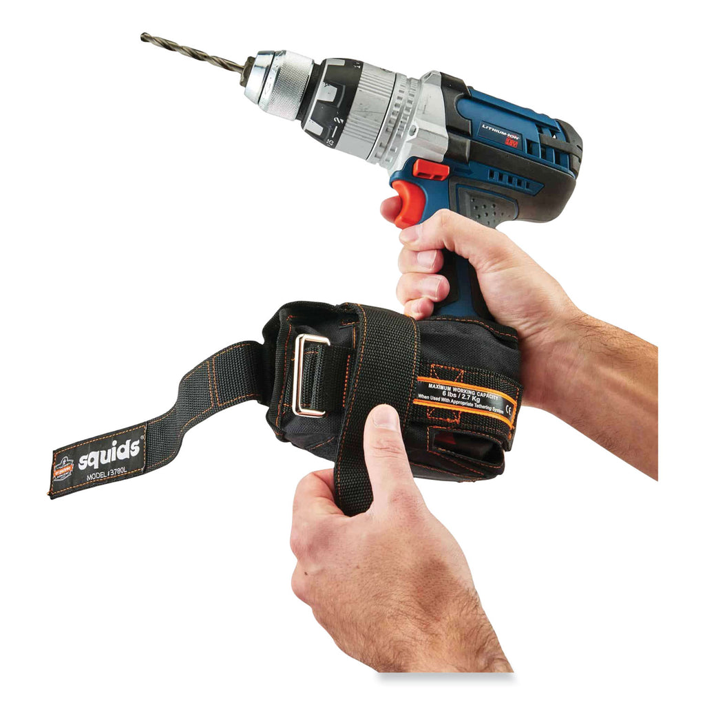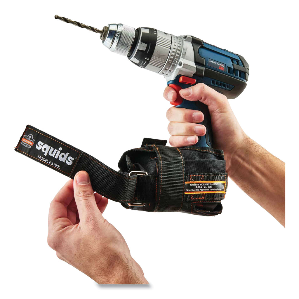 - Two hook-and-loop straps secure battery boot to drill battery for safe and easy tethering.