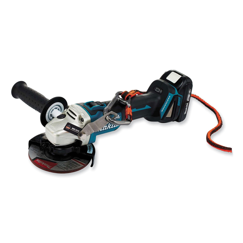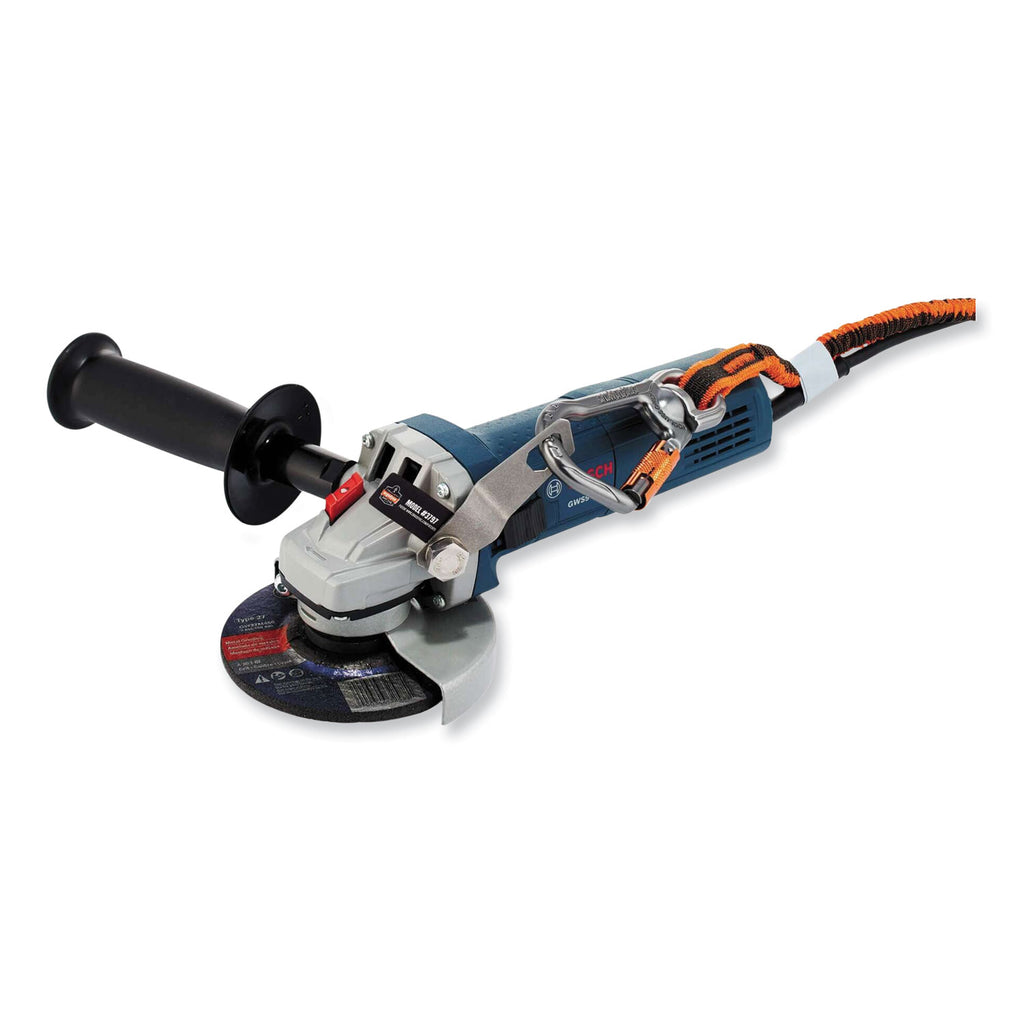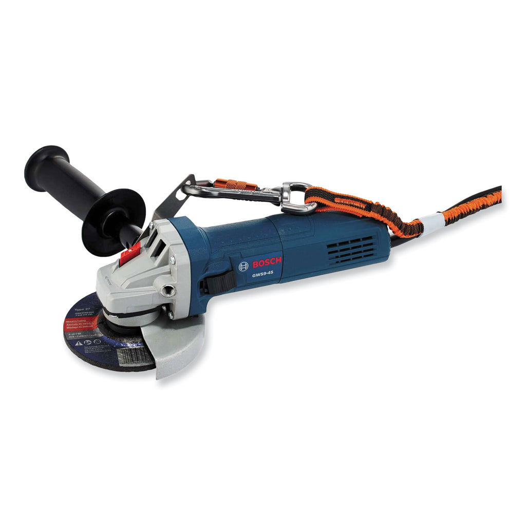 - Tool bracket design fastens to open screw port on grinders and directionally pushes the lanyard away from the grinder's wheel.