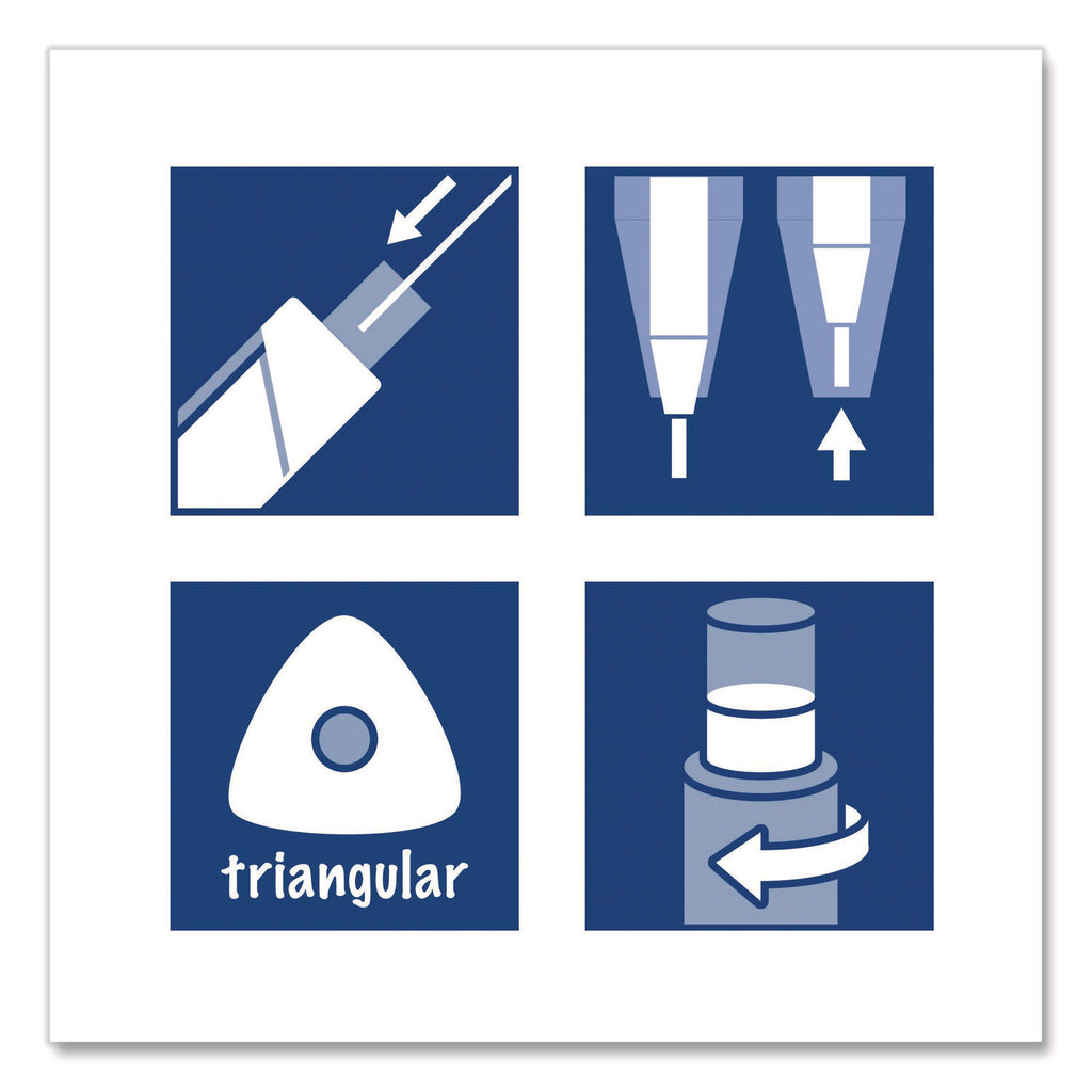 Staedtler® Triplus mechanical HB #2 pencil. Triangular shape offers fatigue-free writing. Extra long screw in/out eraser for precision erasing.