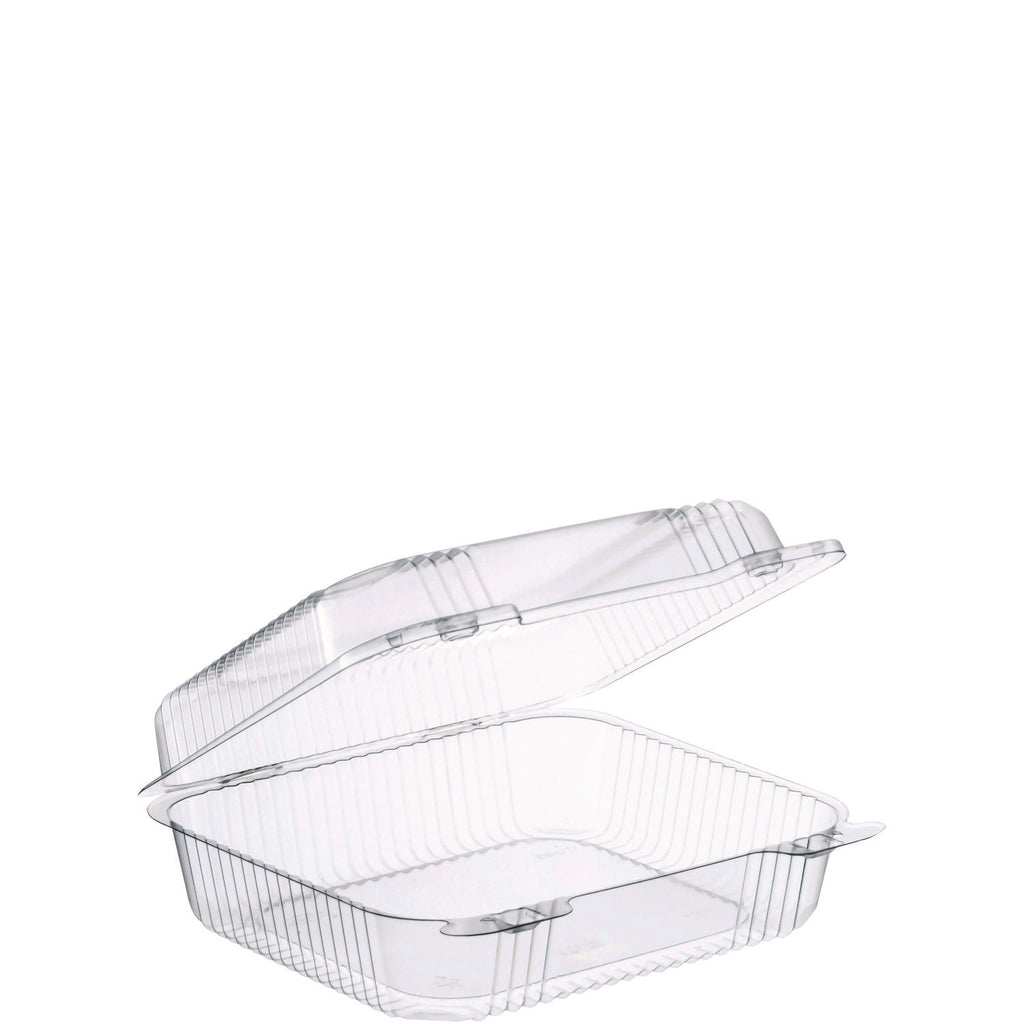 Clear hinged containers offer crystal clarity for excellent product visibility. Dual bar locks ensure a secure closure, even after multiple openings, while sidewall ribbing and chamfered corners increase strength and durability. Lightweight, crush-resistant and stackable. Serve multiple applications.