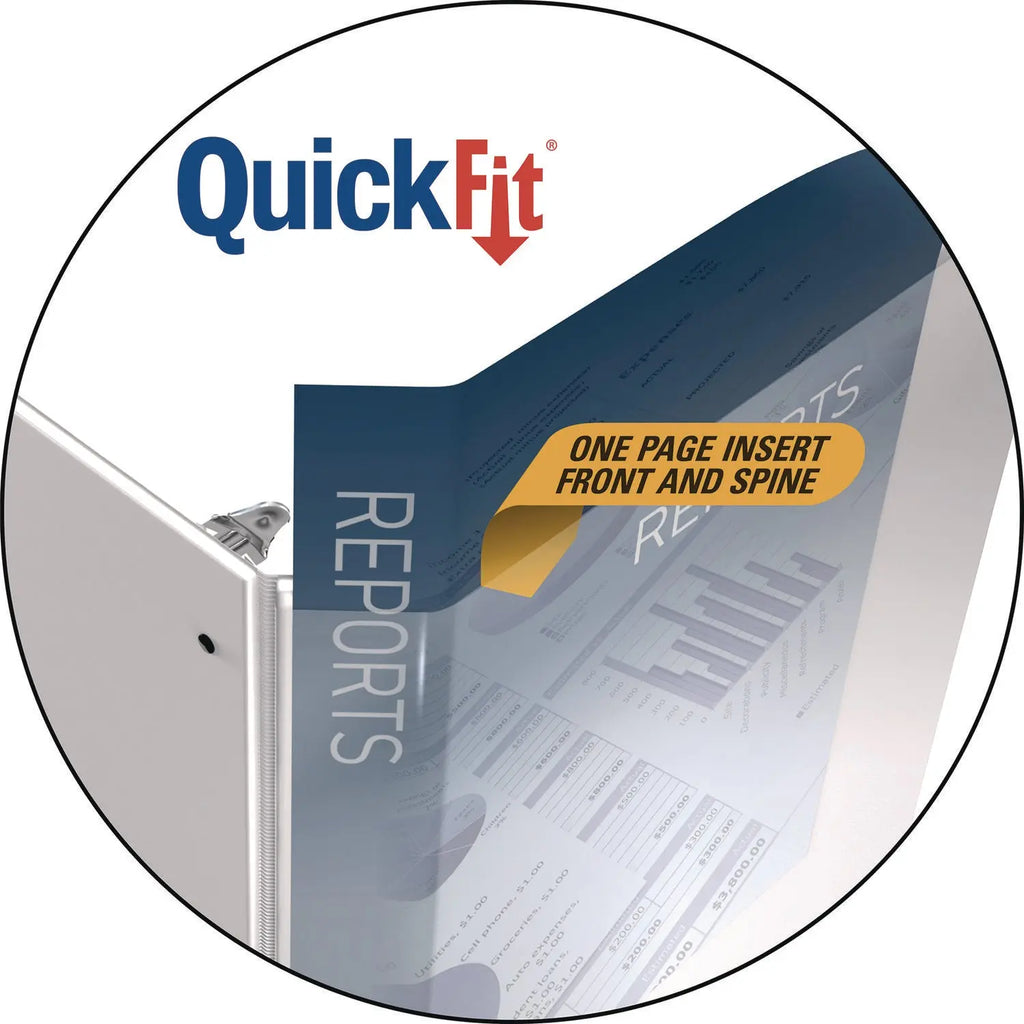 Customize the front and spine with one sheet of paper. Back-mounted rings allow paper to lie flat. Free, customizable insert templates available at the QuickFit® website. Two convenient inside pockets. Ink transfer-resistant overlay.