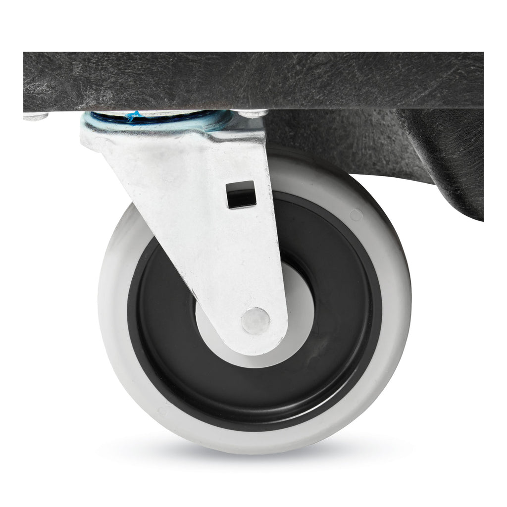 The Rubbermaid Commercial Tilt Truck offers industrial strength construction that transports heavy loads with ease. These tilt trucks feature seamless one-piece molded truck bodies with a reinforced lip. The sturdy, plastic construction won't rust, dent, chip, or peel and is easy to clean. 4-inch center swivel back caster provides easy maneuvering. 10-inch blow-molded polypropylene inset wheels protect surroundings. The dump trailer has a powder-coated steel frame for corrosion resistance. This tilt truck is easy to handle and maneuver through commercial doorways and onto elevators. The constant force design allows for controlled dumping by one person. Inset wheels protect walls, fixtures and patrons. The smooth surface is easy to clean and resists pitting and corroding. Optional domed lids are available (sold separately).