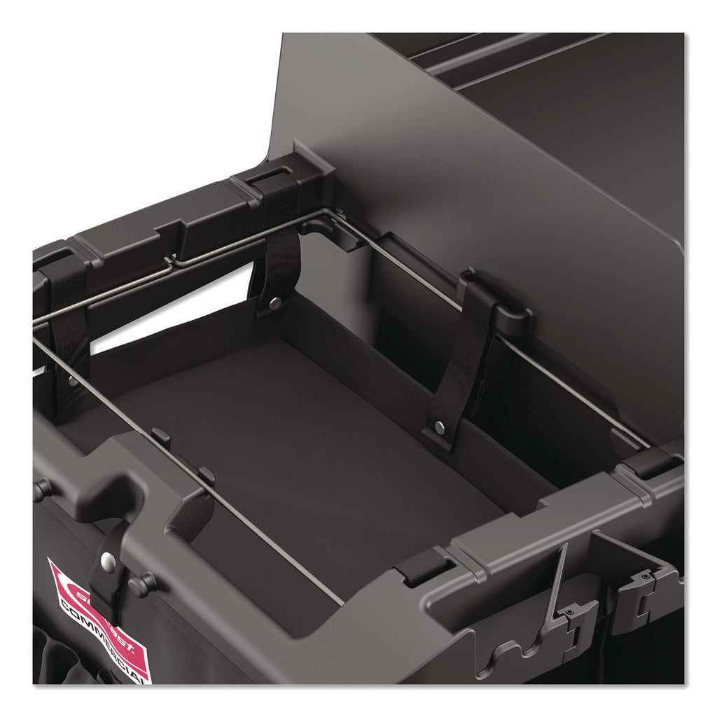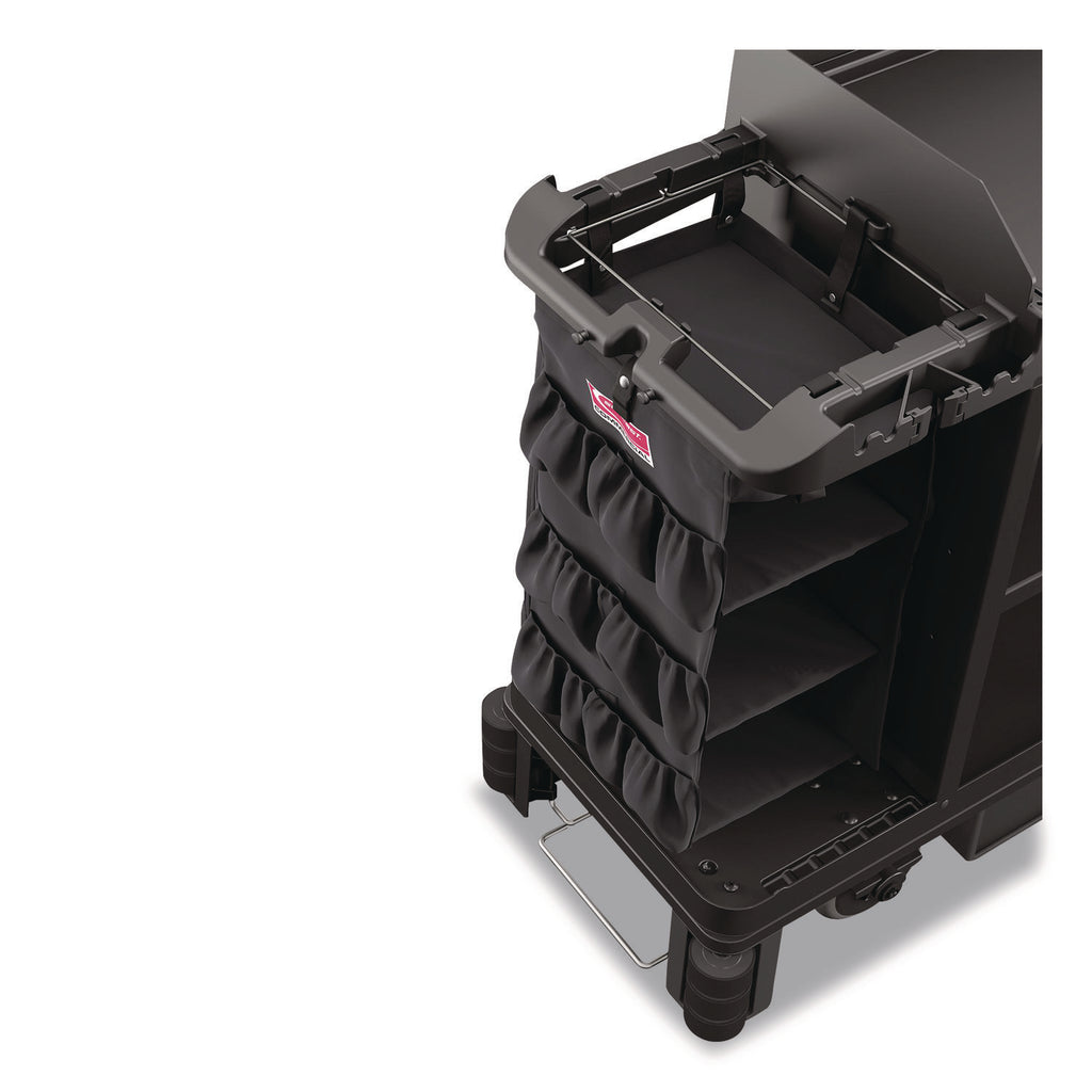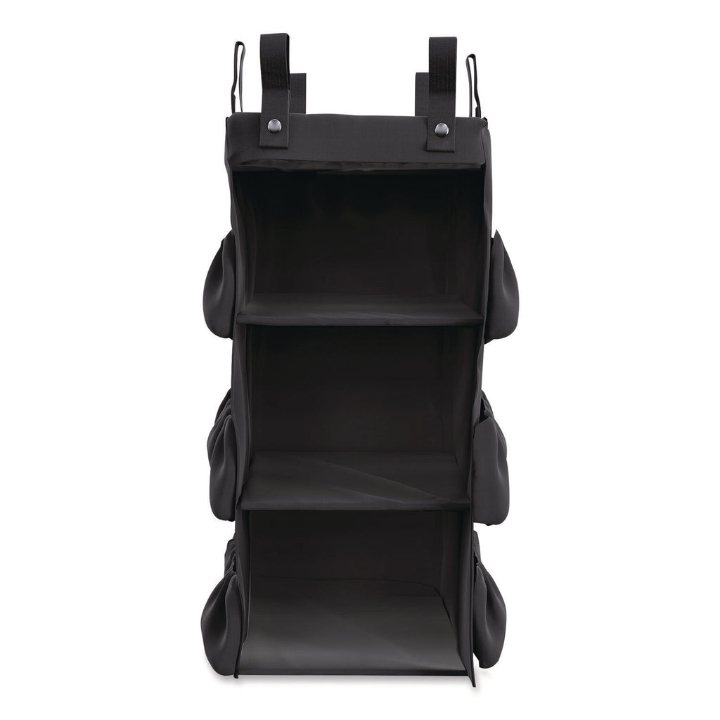 The 3-Sided Hanging Bag with Shelves by Suncast Commercial® is an additional bag to attach to the handle of your cart. This bag features three spacious shelves for more versatile storage solutions, as well as exterior pockets for smaller items. This bag attaches to either side of the Suncast Commercial® HKC1000 and HKC2000 to increase efficiency in the workplace!
