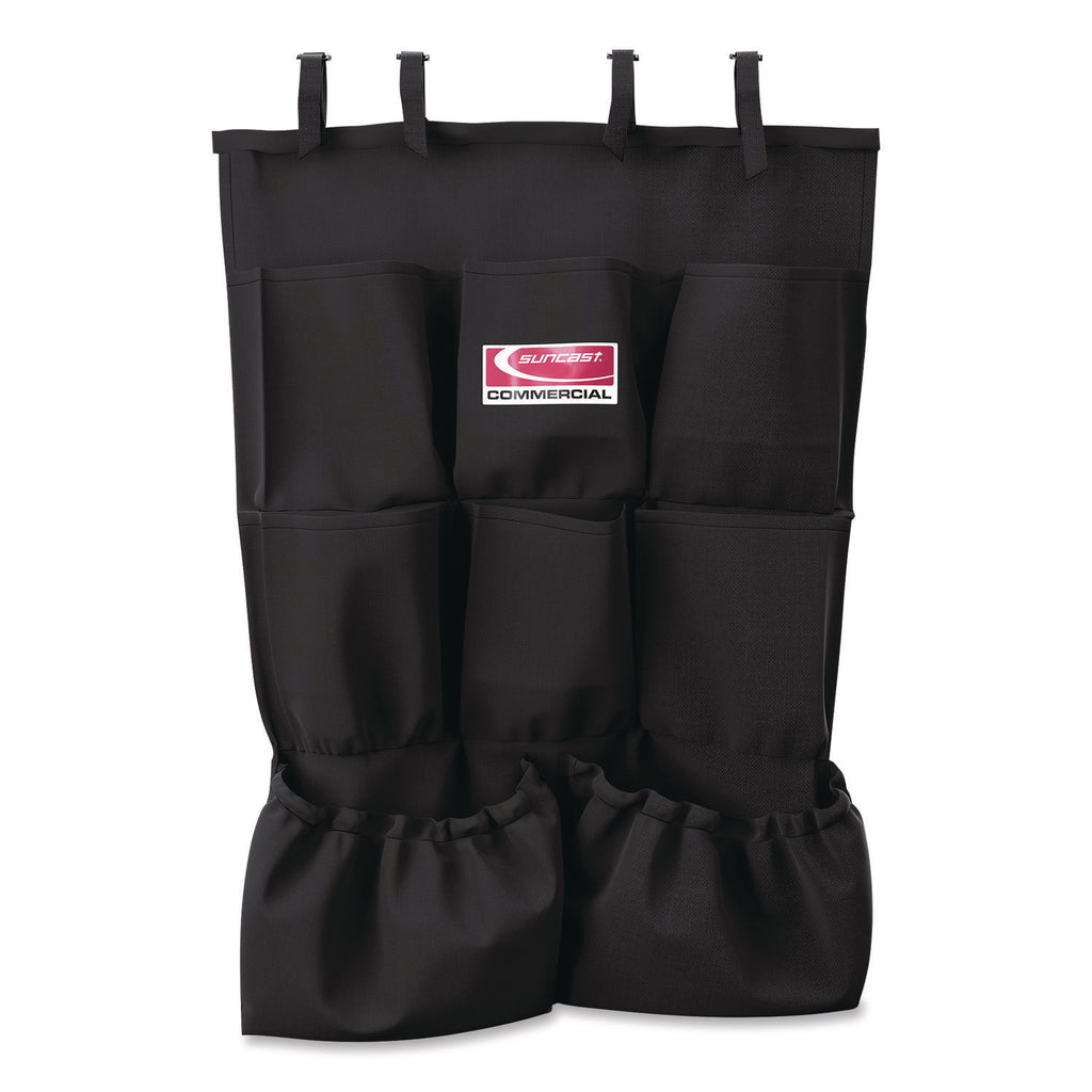 The 8-Pocket Organizer by Suncast Commercial® features eight exterior pockets that are perfect for smaller tools or accessories. The spacious pockets can hold all of the cleaning and janitorial tools that are needed to be quickly grabbed. This bag easily attaches to the handle of Suncast Commercial® housekeeping carts.