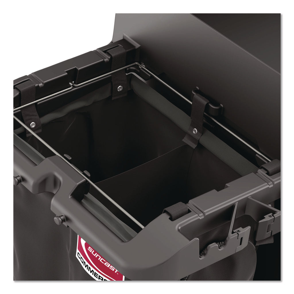 The Suncast Commercial® Divided Bag includes two separate compartments to store and organize your contents. This additional bag option easily attaches to your Suncast Commercial® housekeeping cart handle and is helpful for when trying to keep contents separated. The convenient side zipper provides easy access to contents inside so you can easily find what you are looking for. This accessory is great for increasing versatility while cleaning.