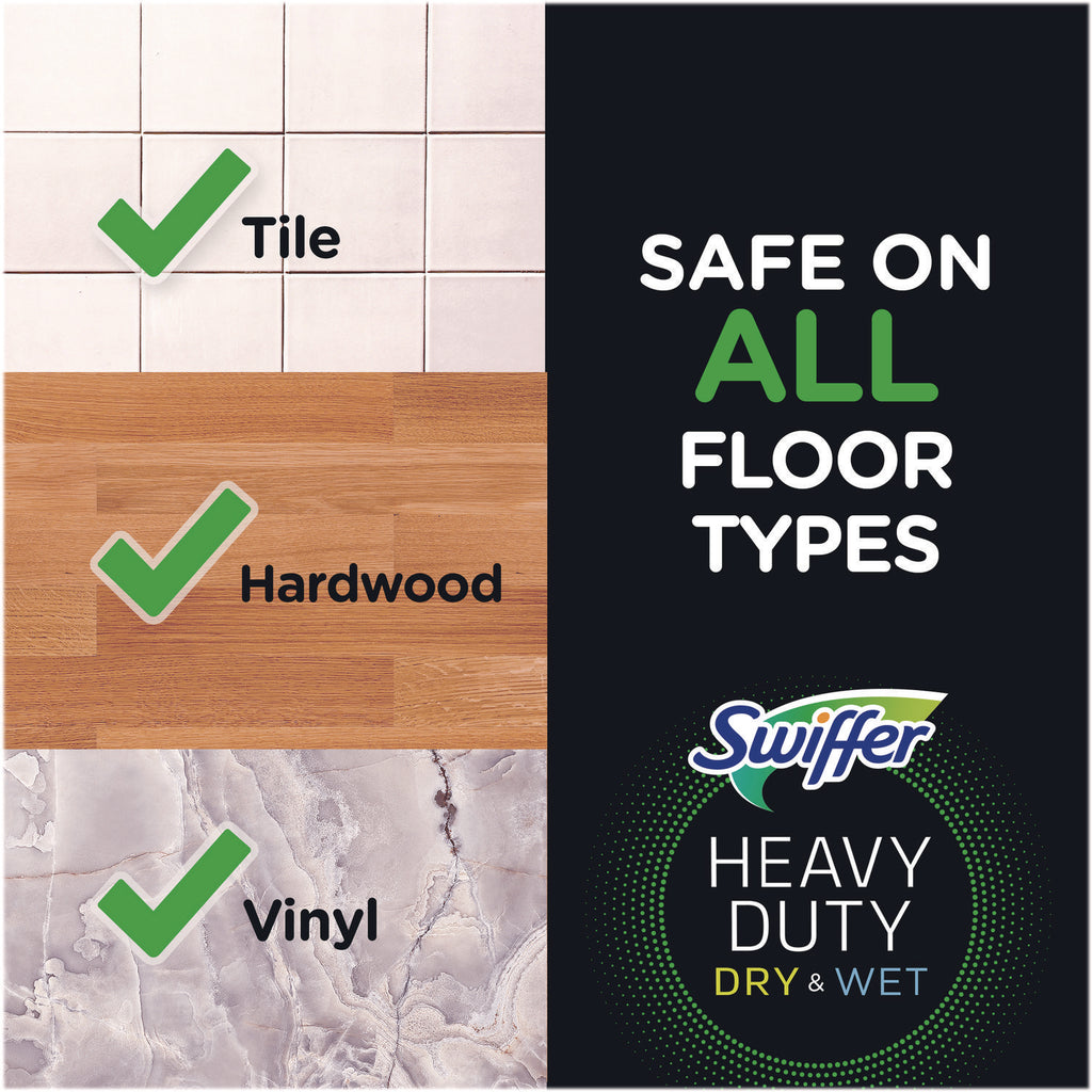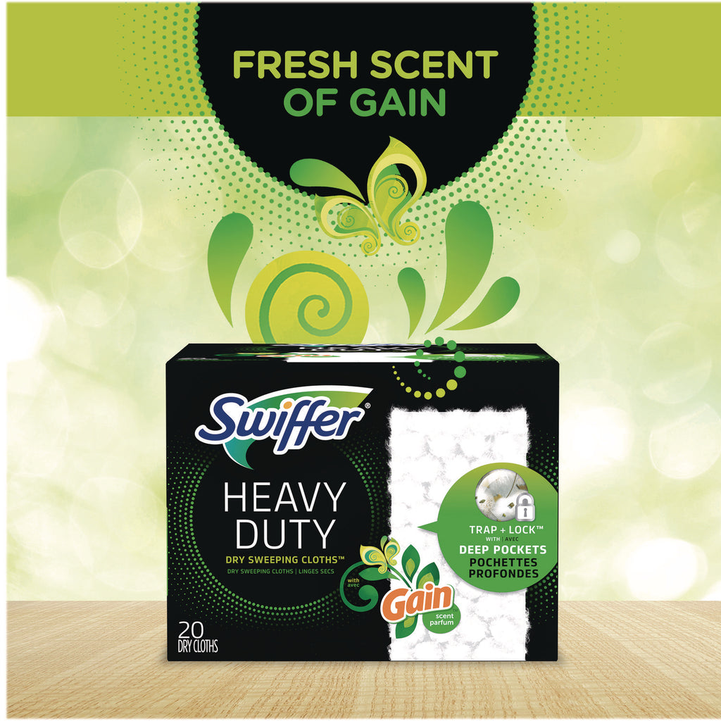 These heavy-duty dry disposable sweeping cloths feature over 30,000 3D fibers that brush into tight spaces to collect dust, dirt and pet hair. They have a stronger electrostatic charge to provide excellent particle collection. These disposable cloths are thicker and have deeper lift and lock pockets than multi-surface Swiffer® Sweeper dry cloths.