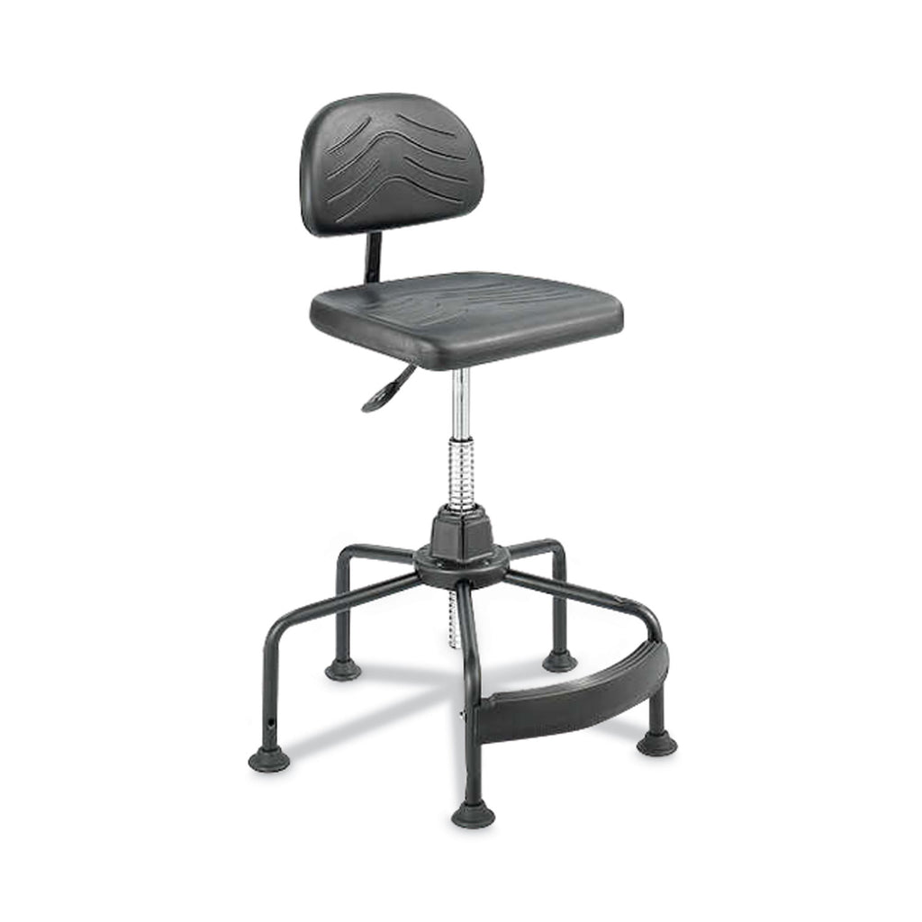 Ideal for installations with multiple applications and height ranges. For 24/7, intensive-use. Adjusts 8" up or down pneumatically while seated and an additional 10" manually with patented Wave Tube Extension. Oversized seat and back are covered with microcellular, self-skinning polyurethane foam. Large base ensures stability. Wide-angled, 26" footrest provides secure footring and ergonomically correct leg position.