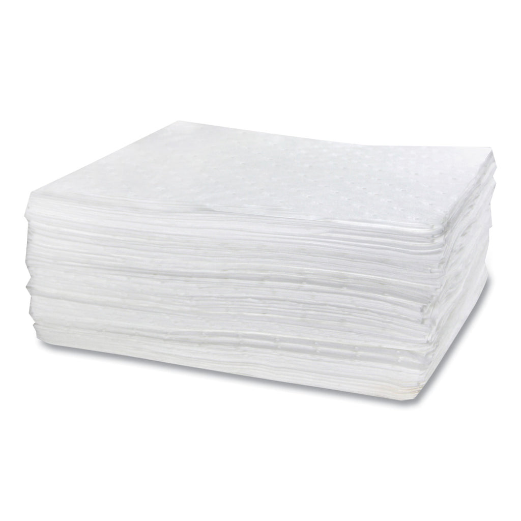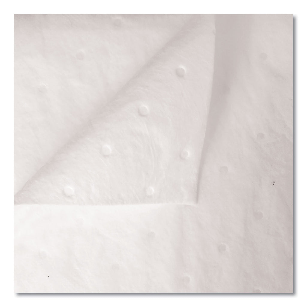 Quick absorbency of spills and leaks. Dimple design provides added strength and is low-linting. Most effective when used outdoors. Absorbs oil-based spills and leaks and repels water.