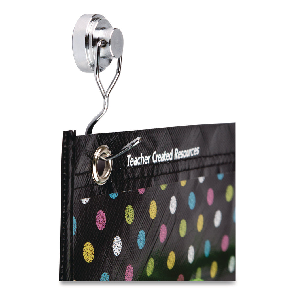 Teacher Created Resources Magnetic Hooks are great for hanging seasonal decorations in the classroom! Use to hold or hang heavy objects throughout your classroom. Made with super strong neodymium magnets. Hooks can swivel up and down. Holds approximately 20 lbs from a vertical position and approximately 10 lbs from a horizontal position on heavy steel. Holds approximately 1 lb on a whiteboard and approximately 8 lbs on a metal door.
