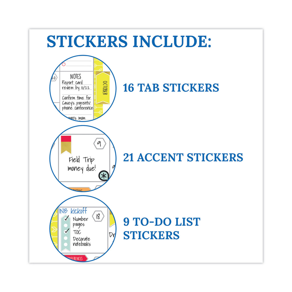 - Includes a sheet of stickers to add organizational tabs, record to-do lists, and add decorative accents and reminders.