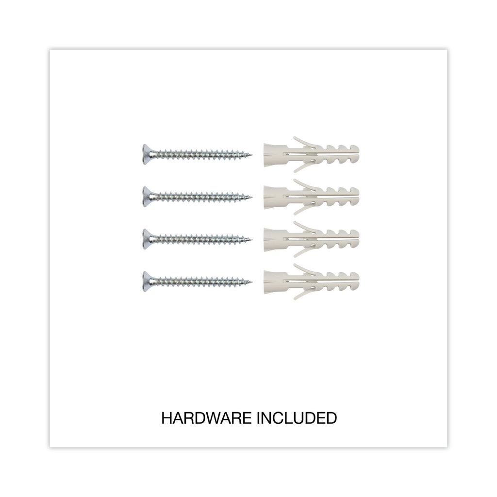 The perfect addition and organizer for any personal work space or office. Built with a sleek, heavy duty, plastic, black frame with smooth, rounded corners. The functional board is a modern combination of rubber and cork material, providing it with extra durability and a unique color. Easily mount the frame board vertically or horizontally with included hardware.