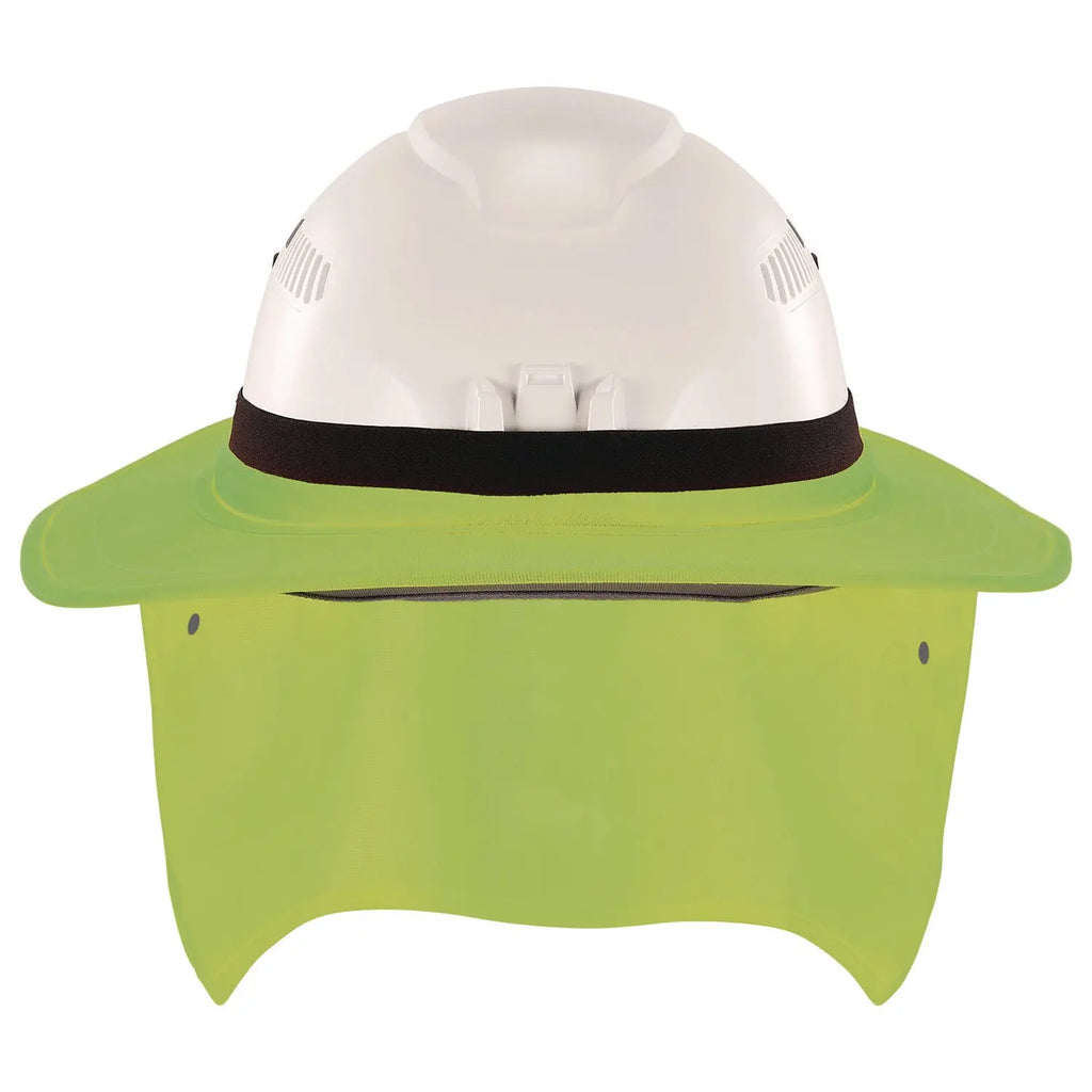 The universal hard hat brim with neck shade attaches to hard hats and safety helmets to shade the face and neck for protection against sun damage. This flexible full brim shade features a silicone-lined elastic interior to securely grip and attach to most hard hats and safety helmets.