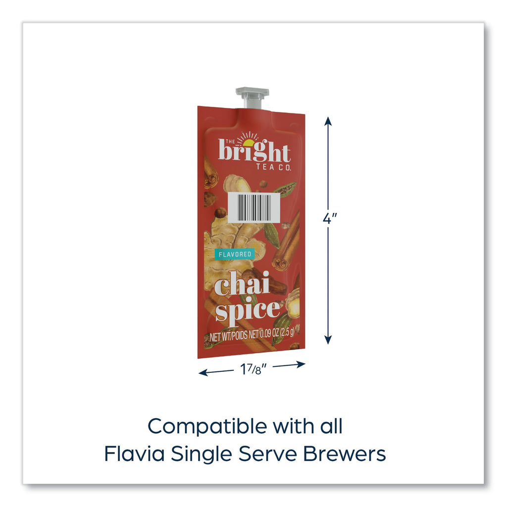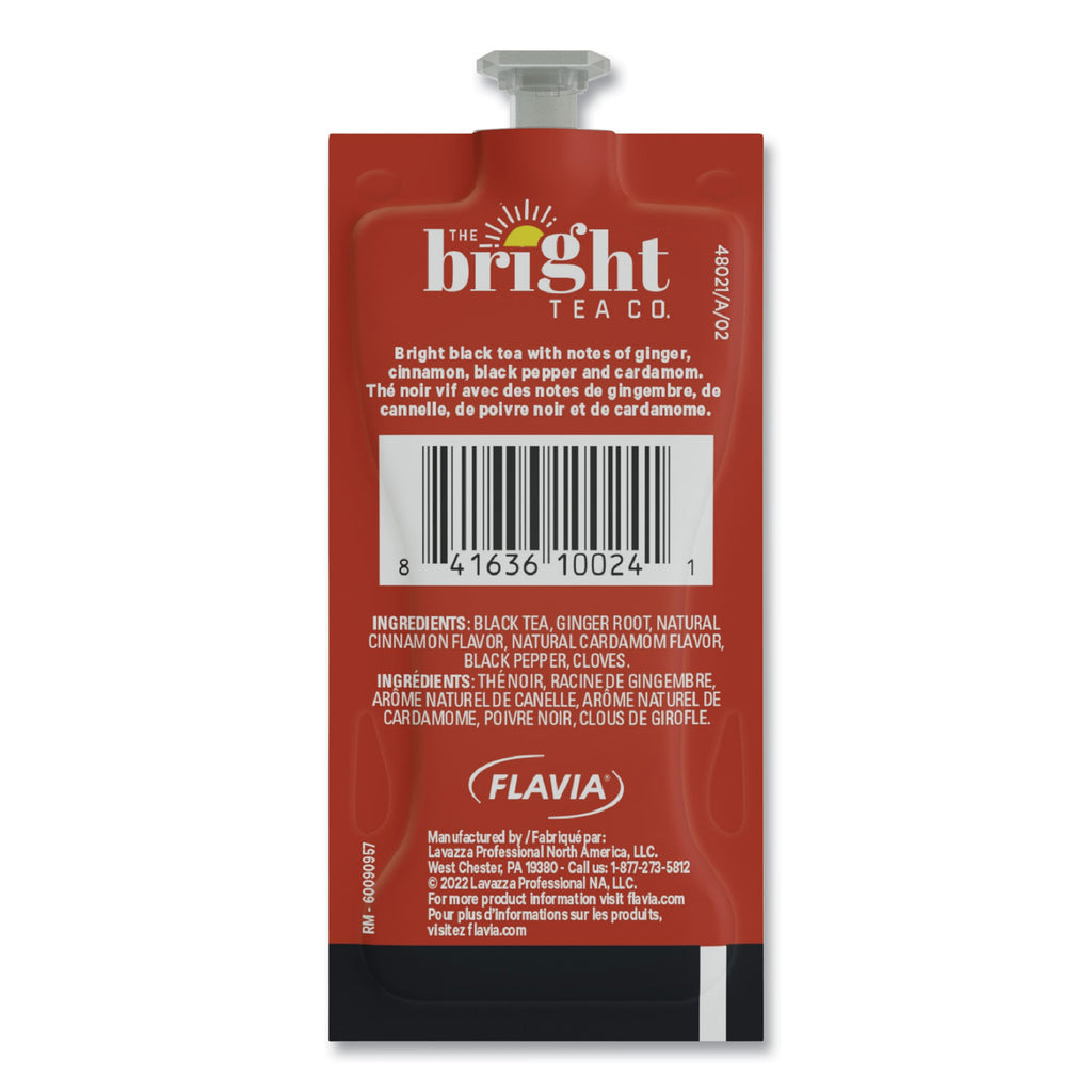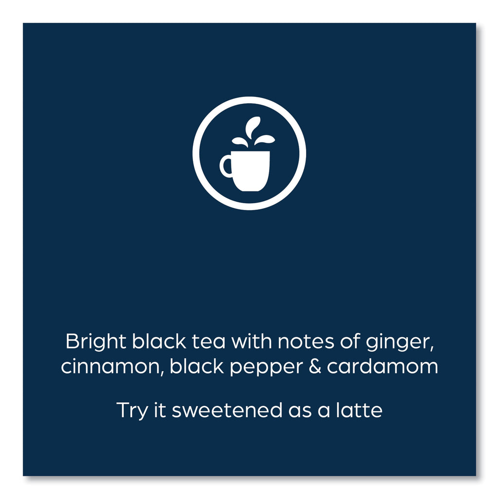 This bright black tea, with notes of ginger, cinnamon, black pepper, and cardamom, is best served sweetened as a latte. Our brewing process, where nothing touches the ingredients other than hot water, ensures your drink does not taste like previous brews. Compatible with FLAVIA® single-serve brewers. For single-serve sustainability, innovative pouches are 100 percent recyclable through Terracycle.