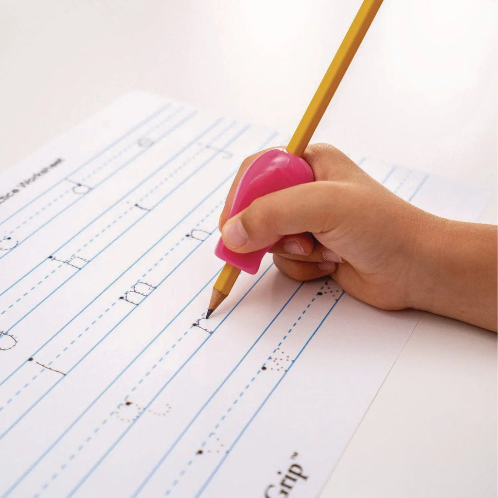 This grip helps improve comfort, control, and the quality of handwriting. It uses the proven design of The Pencil Grip and is 40% larger. The large size of the grip means it provides more support, up to the second knuckle. Unlike other large pencil grips, the jumbo grip feels natural because of its ergonomic design and soft, flexible, latex-free material. The unique shape gently encourages the fingers and hand to rest in the proper position for grippingThe Tripod Grip. The Jumbo Grip was designed by a doctor and is widely used in classrooms, at home, and in therapeutic settings. The unique shape is designed to be "one size fits all" to help the hands of kids and adults, and work for both righties and lefties. The grip can be used as a training tool or used permanently for added support. It fits on pencils, primary pencils, pens, crayons, markers, paint brushes and more so its benefits can be widely enjoyed.