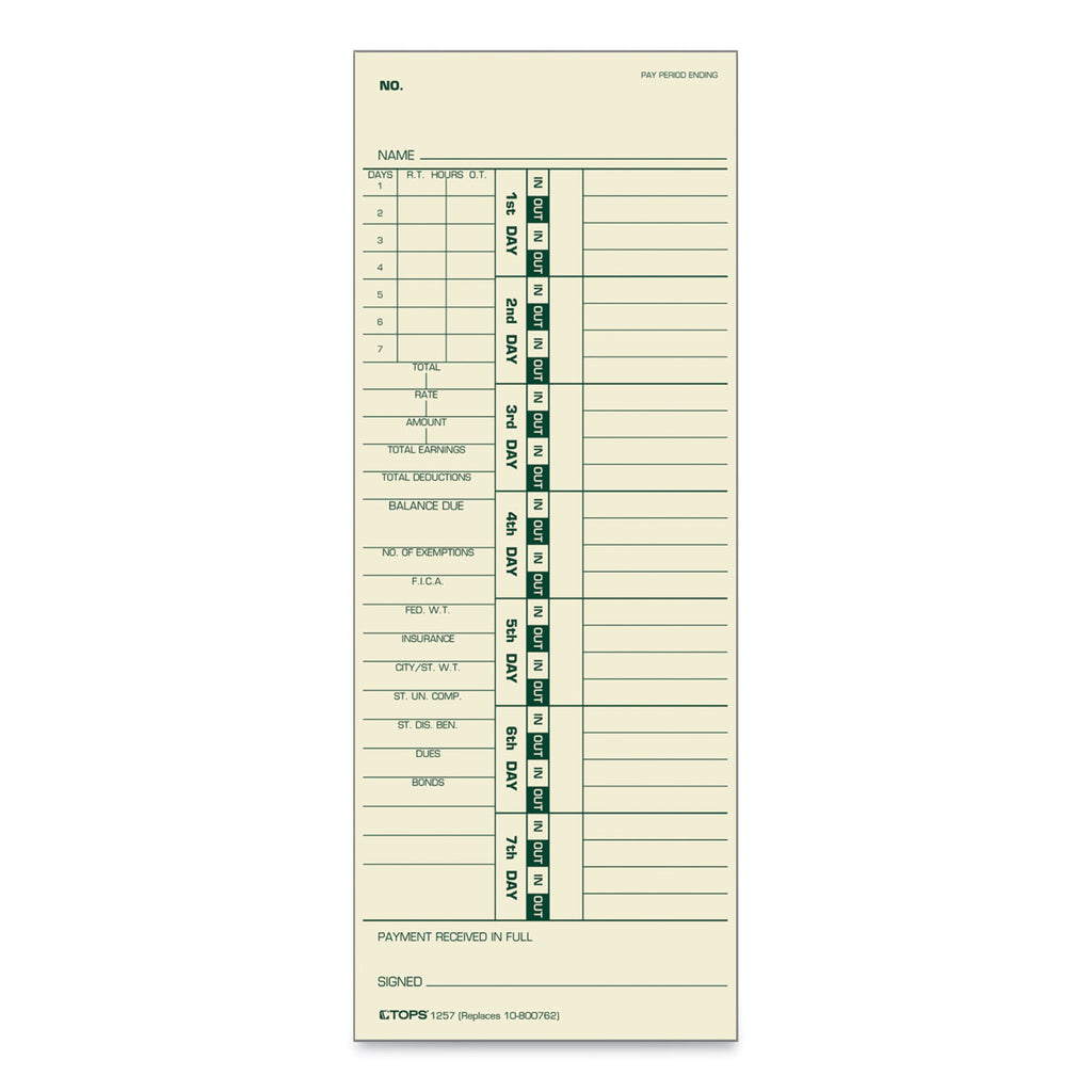 - Equivalent to time clock manufacturers time cards.