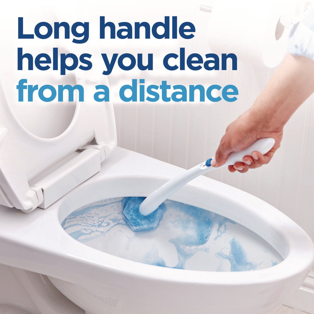 - Replaces your liquid cleaner and your brush; disposable scrubbing pads are preloaded with cleaner that kills 99.9% of germs to make toilet cleaning fast and easy.