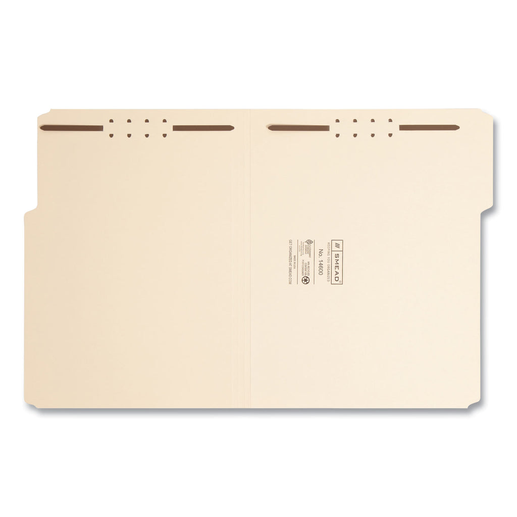 Heavy-duty manila fastener folders feature a thicker paper stock that will stand up better to the challenges of frequent or lengthy use. Two fasteners per folder provide two separate filing surfaces and a secure way to organize your documents.