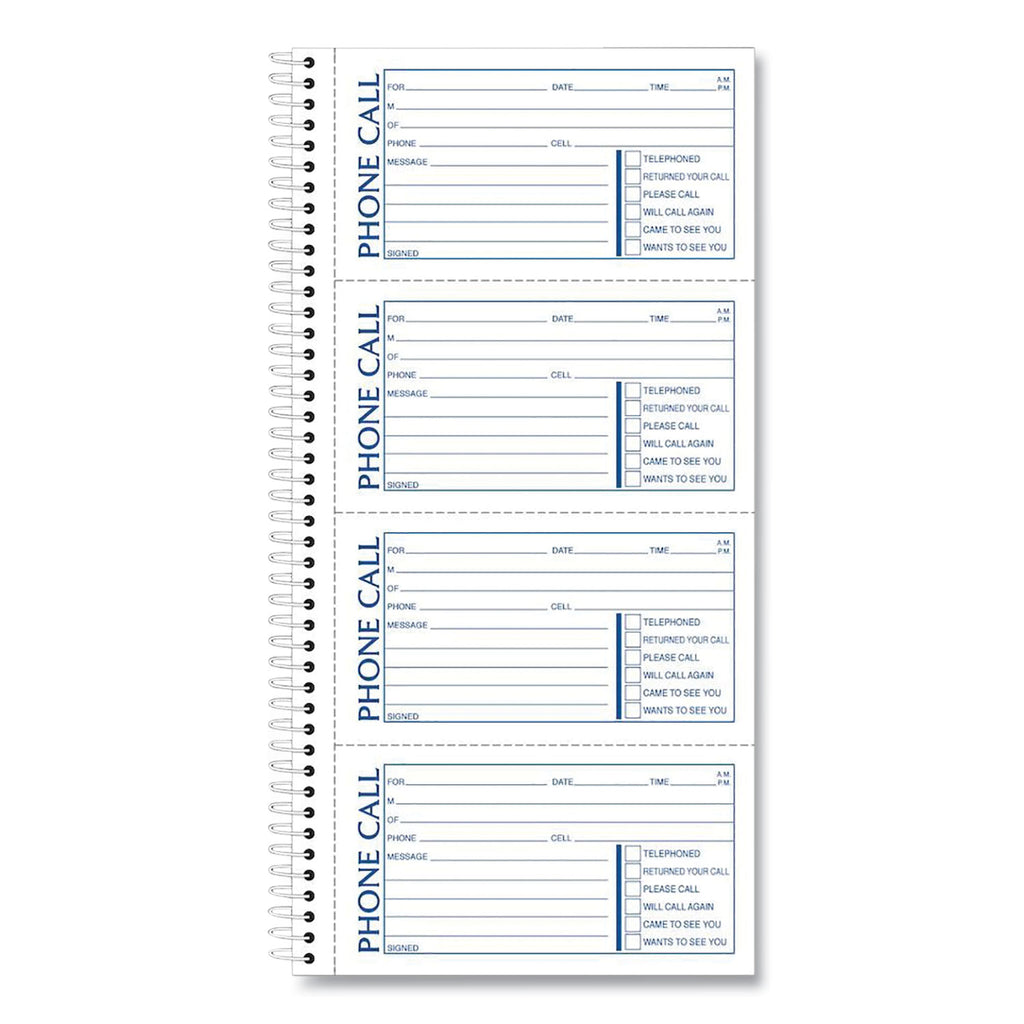 Coil-locked wire binding, vinyl coated. Stop card prevents write-through. Black-print carbonless duplicates remain bound in book for permanent record. Date register on front cover.