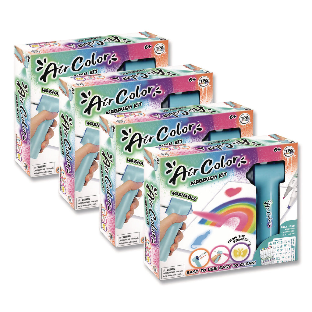 Unleash your creativity with the AirColor™ Airbrush Marker Kit, the ultimate tool for young artists ages 6 to 14. This easy-to-use, washable airbrush kit allows you to create stunning, vibrant airbrush effects without any mess. This kit includes an array of dual-tip markers, each one with a chisel tip on one end, and a bullet tip on the other. The bullet tip effortlessly slides into the AirColor™ Air Brush. The possibilities for artistic expression are endless! Whether you're designing with stencils or free-handing your masterpieces, the AirColor™ kit makes airbrushing a breeze.