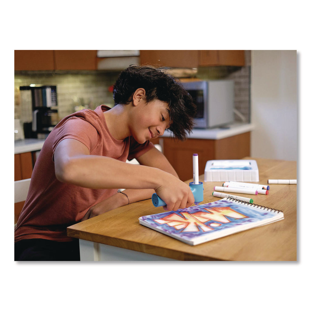 - Easy to use—insert one of the included markers into the airbrush device, press the button and spray vibrant colors effortlessly onto paper to create smooth gradients or bold designs.