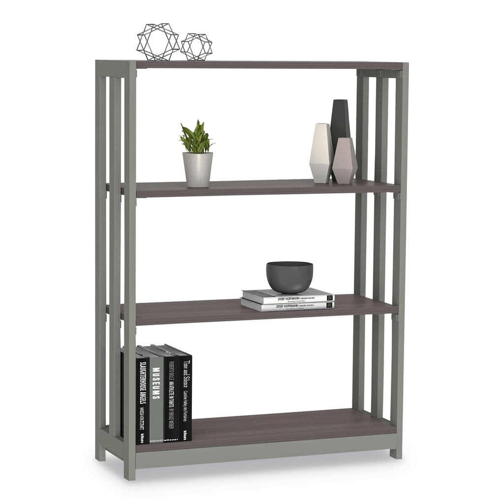 Strong powder coated steel frame with laminate shelves. Four shelves.