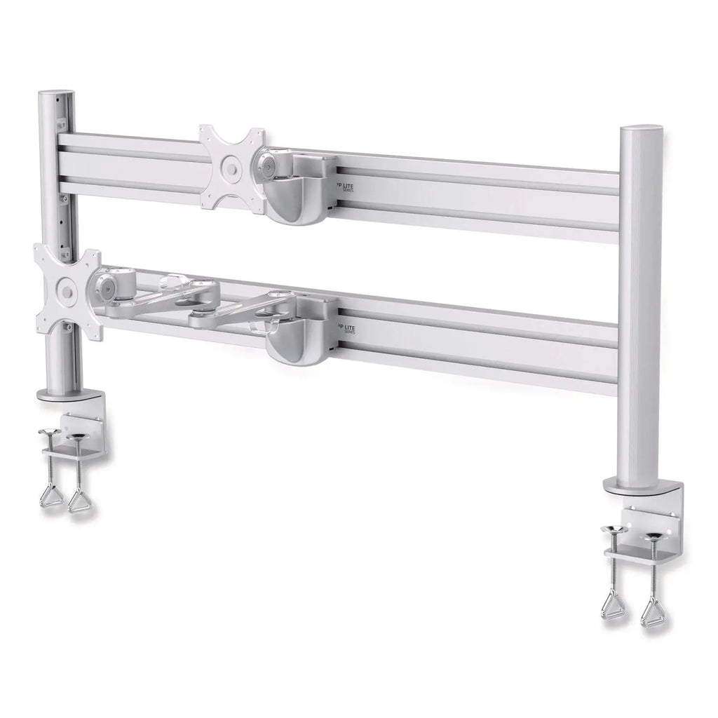 - Elevates multiple monitors above your work surface to provide better viewing angles and keep desktop clean.