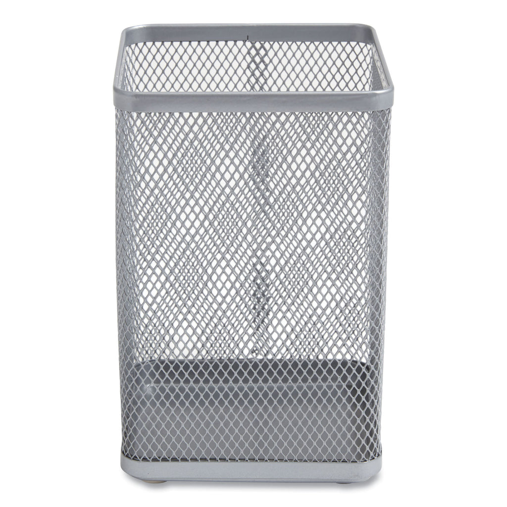 Keep your workspace organized. Single compartment keeps writing utensils and small office tools in one central location. Square design with flat rounded edges gives your desktop a contemporary look. Features tightly woven mesh construction for added durability.