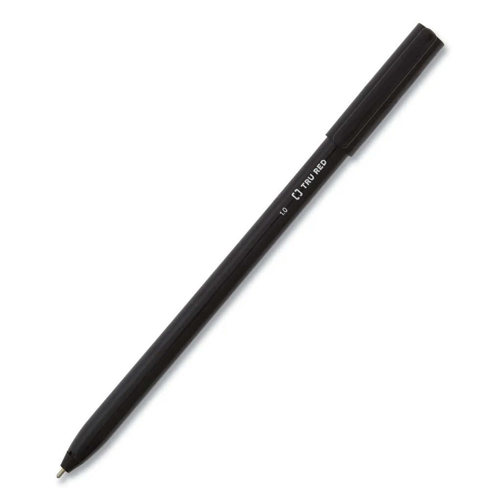 TRU RED™ Ballpoint Pen, Stick, Medium 1 Mm, Black Ink, Black Barrel, Dozen