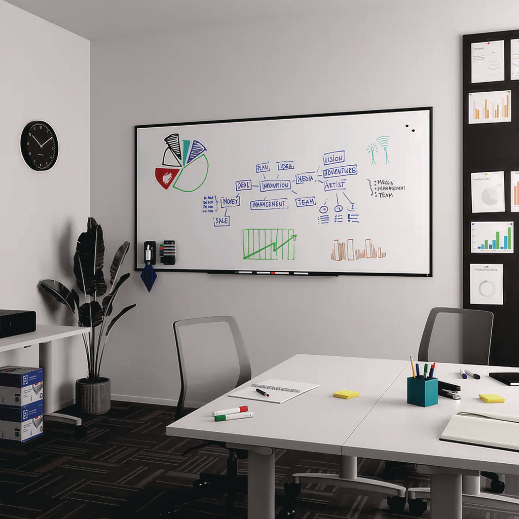 - Durable dry-erase surface with aluminum frame.