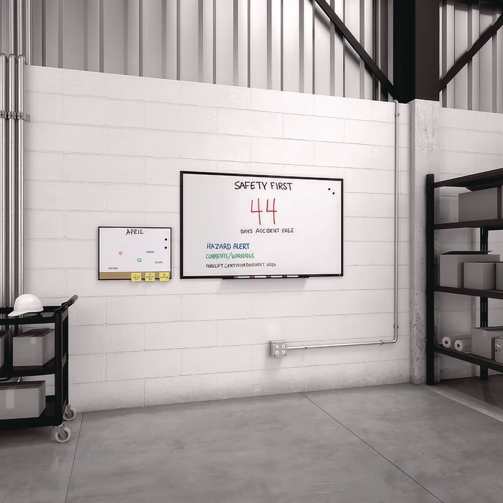 Keep everything you need in one place with the 8' x 4' TRU RED durable porcelain magnetic dry erase board, featuring a smooth surface made for easy writing and convenient cleanup. When sharing, changing, and perfecting ideas, you need the reliability of TRU RED Dry Erase Boards, the ultimate collaboration tool.