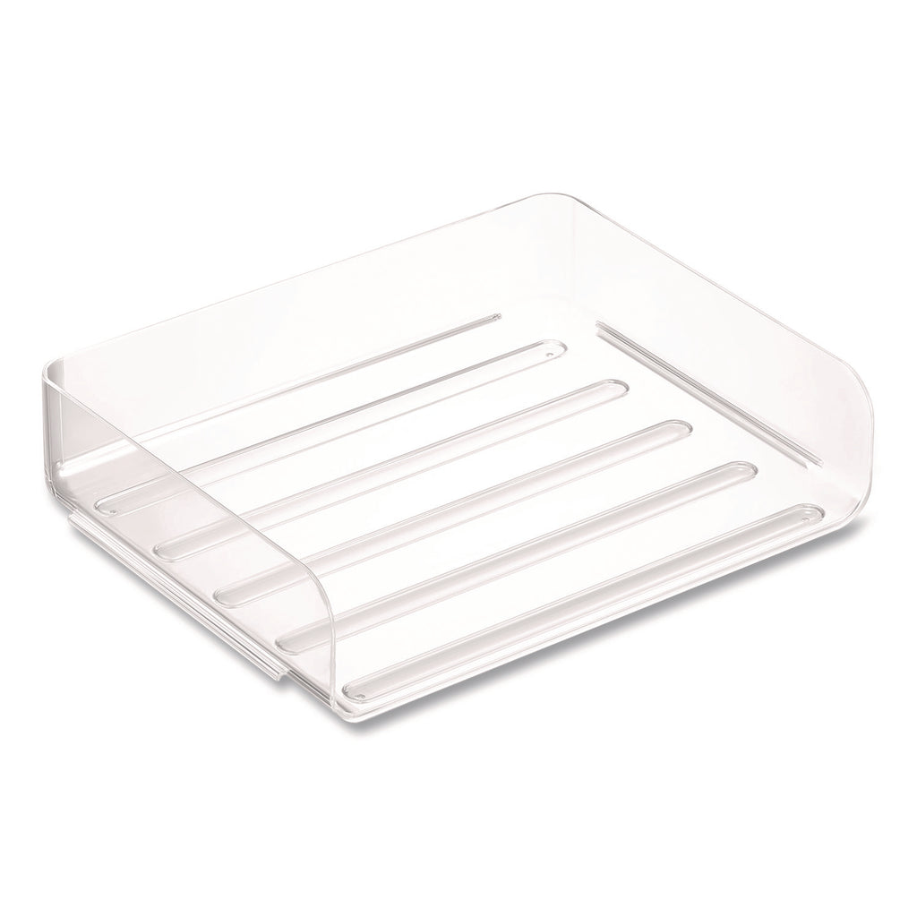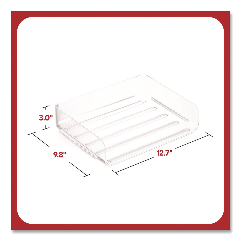 Keep your desktop and workspace neat and organized with the TRU RED™ Clear Side Load letter trays. Use alone or stack multiple. The stacking design makes it easy to create an efficient sorting system for documents, folders, papers, files and more. With deep sides, these TRU RED™ clear side load letter trays keep papers neatly in place to reduce clutter.