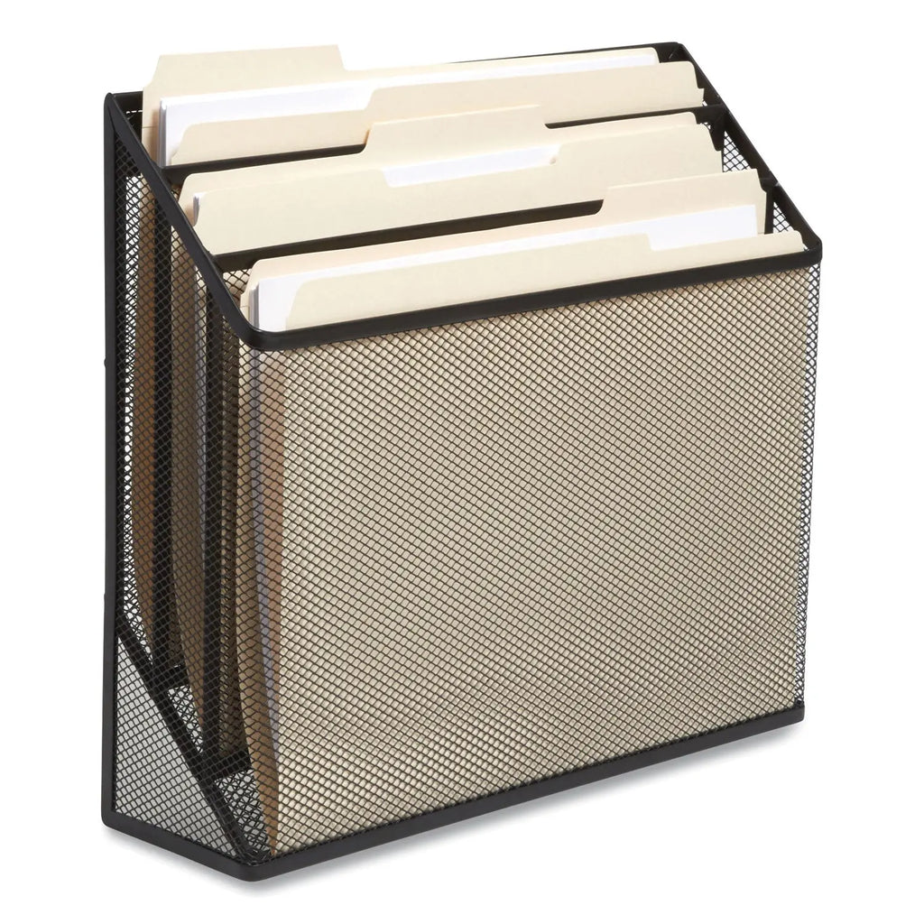 Reduce clutter and improve the overall appearance of your workspace. Inclined design and staggered openings accommodate paper pads, file folders, forms, documents and large-format envelopes. Features a tightly woven metal-mesh body and a sleek, flat-square frame with rounded edges.