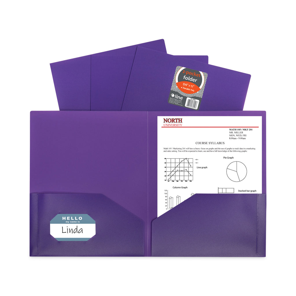 - Two-pocket heavyweight polypropylene portfolios/folders hold papers and resist tearing.