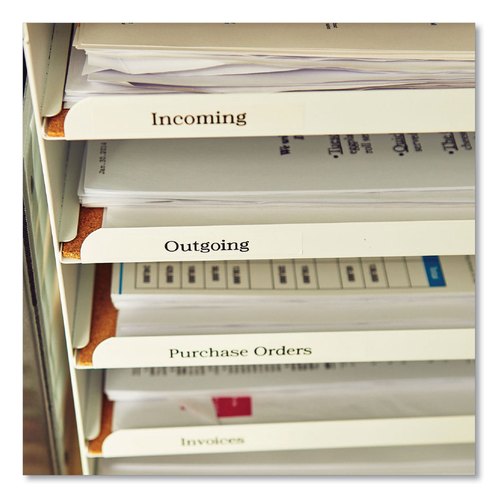 For labeling flat, smooth surfaces. Perfect for labeling file folders and binders, name badges, and small signage. Laminated surface wipes clean. Withstands water, grease, grime, fading and abrasion. Can be used for indoor and outdoor applications. Tape measurements are approximate.