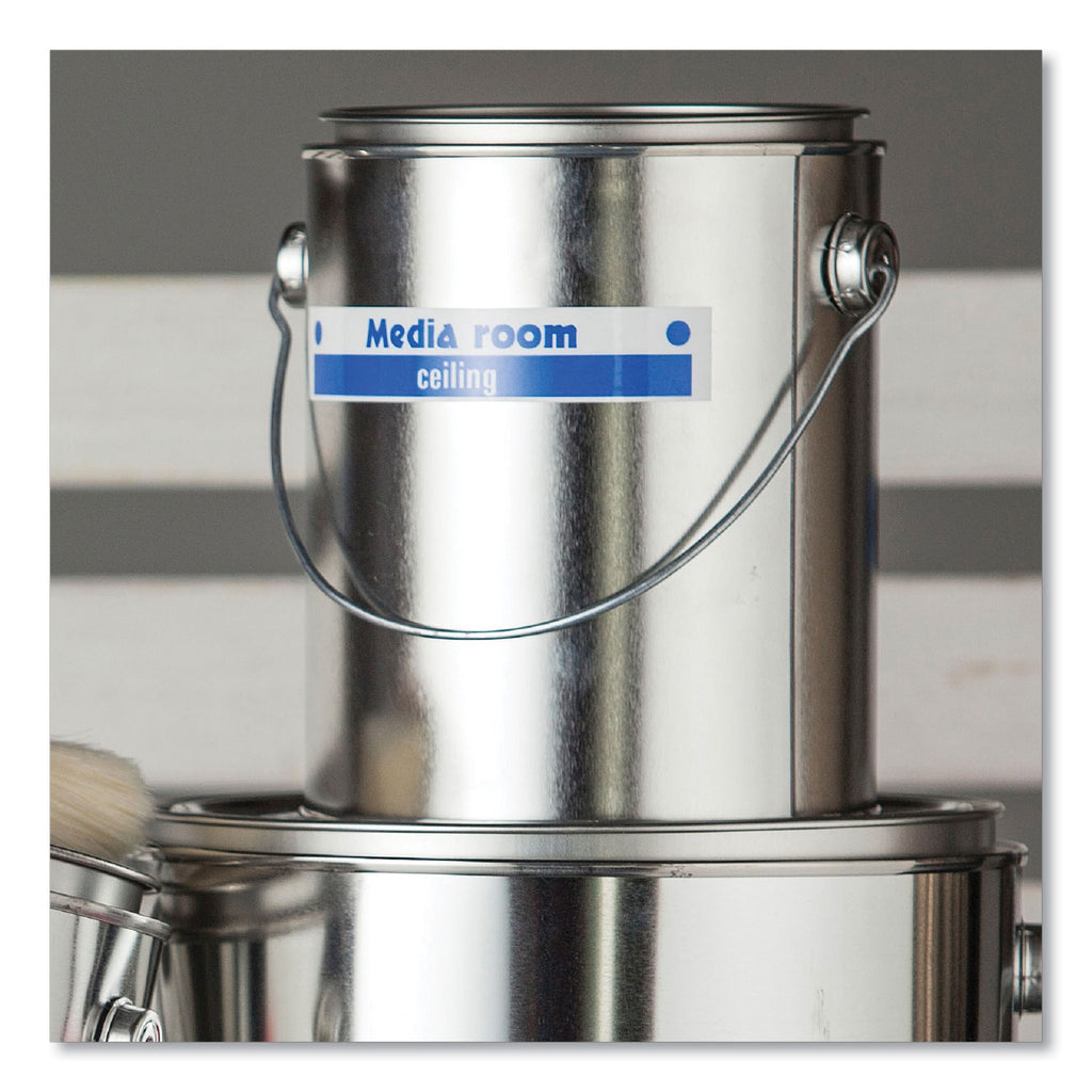 For labeling flat, smooth surfaces. Perfect for labeling file folders and binders, name badges, and small signage. Laminated surface wipes clean. Withstands water, grease, grime, fading and abrasion. Can be used for indoor and outdoor applications. Tape measurements are approximate.