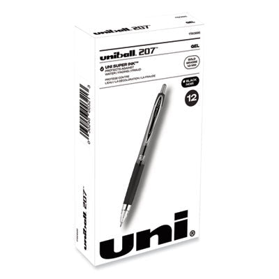 uniball® Signo 207 Gel Pen, Retractable, Bold 1 mm, Black Ink, Smoke/Black Barrel, Dozen