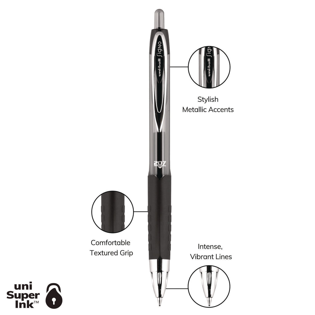 Stainless steel tip resists bending and breaking. Even-flowing, pigment-based gel ink delivers a smooth writing experience for intense, vibrant lines, ensuring that every mark is brilliantly communicated. Use these retractable gel pens for everyday writing tasks, check signing and all of your important signatures, trusting its quick-drying uni Super Ink.