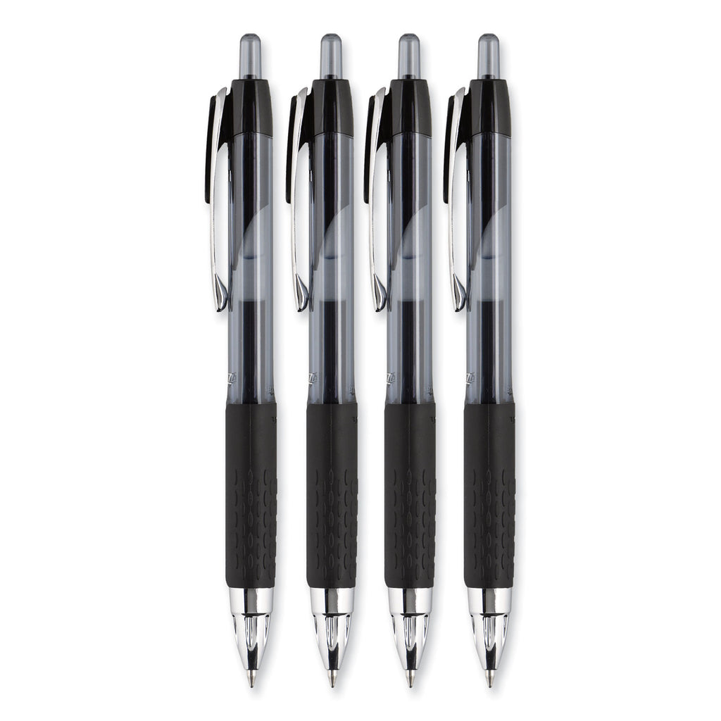 uniball® Signo 207 Gel Pen, Retractable, Medium 0.7 mm, Black Ink, Smoke/Black Barrel, 4/Pack