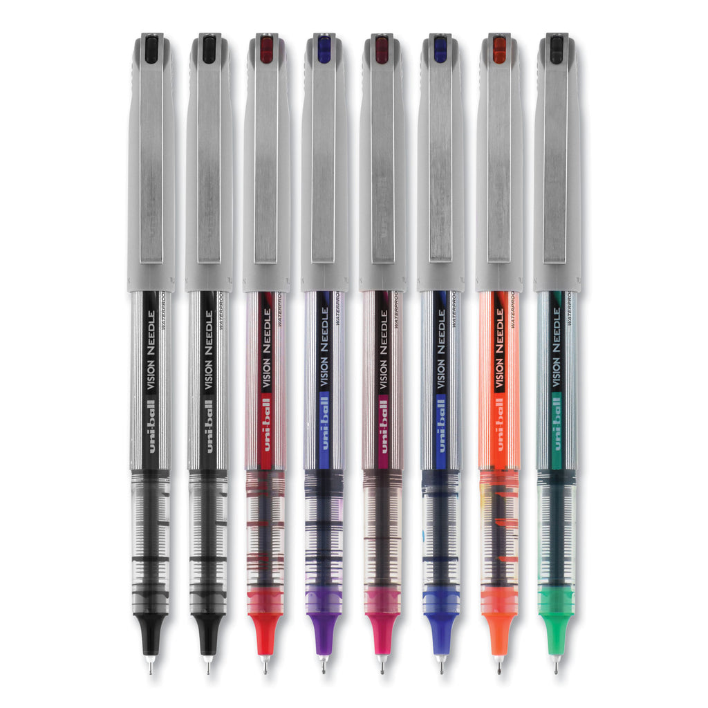 uniball® VISION Needle Rollerball Pen, Stick, Fine 0.7 mm, Assorted Ink and Barrel Colors, 8/Pack