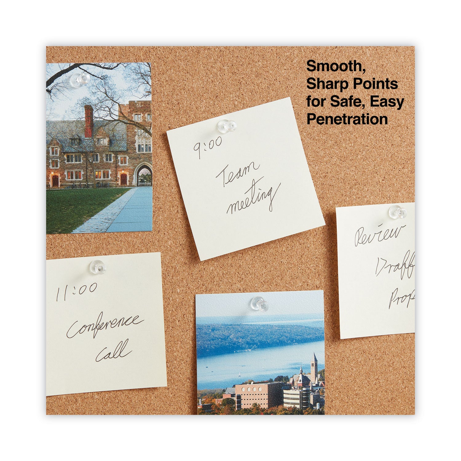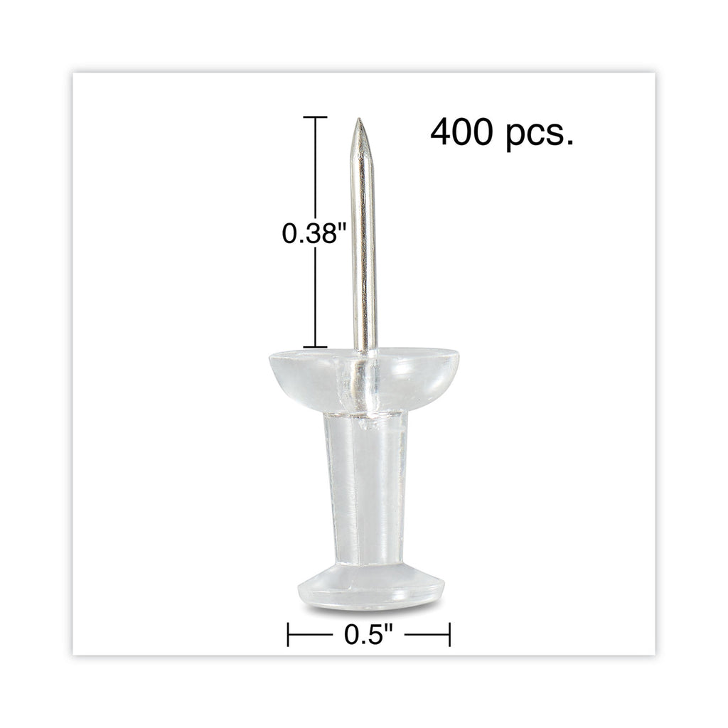 Clear plastic head allows you to tack up important documents and posters without unwanted visual distractions. Steel pin glides right into even the toughest surfaces: drywall, plaster and mat-board as well as cork and foam.