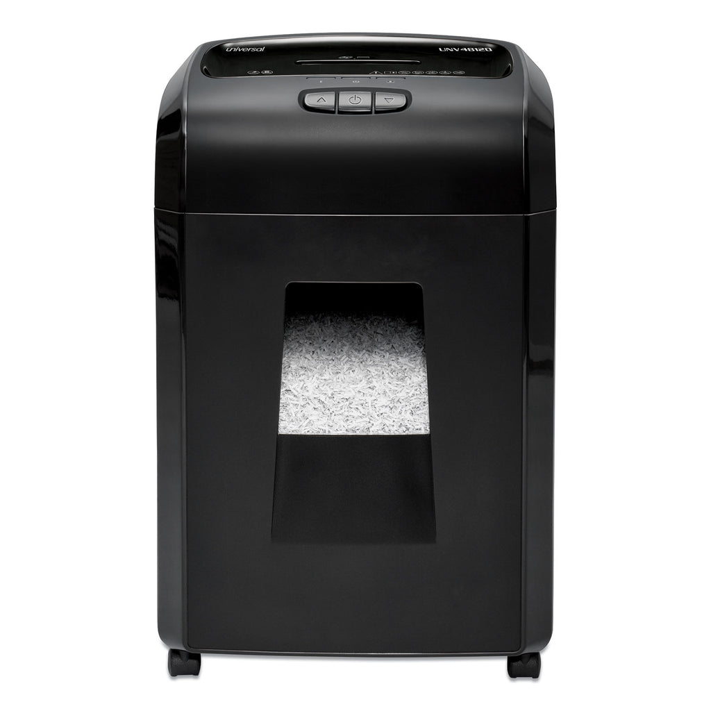 Shreds up to 20 sheets at a time into tiny micro-cut particles (Security Level P-4). Auto reverse feature stops and reverses paper should a jam occur. Quiet shredding for home and small offices. Safely shreds staples, paper clips, plastic credit cards, CDs/DVDs and junk mail. Runs continuously for up to 20 minutes before a 15-minute cool down period is needed. Eight-gallon pull-out waste bin.