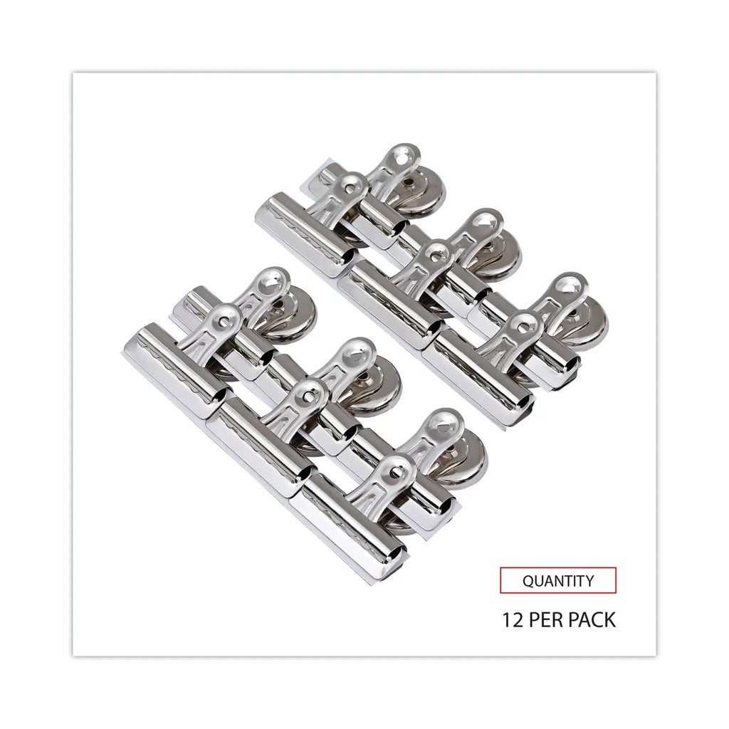 Durable, nickel-plated, magnetic clip is great for hanging notes, calendars, schedules, receipts, or photos on fridges, file cabinets, and other metal surfaces. The strong clip is built with heavy-duty construction for long-lasting, reliable use. The round, magnetic backing stays in place without sliding, even when holding multiple papers. Reinforced clip with added strength for gripping single or multiple sheets of paper with ease.