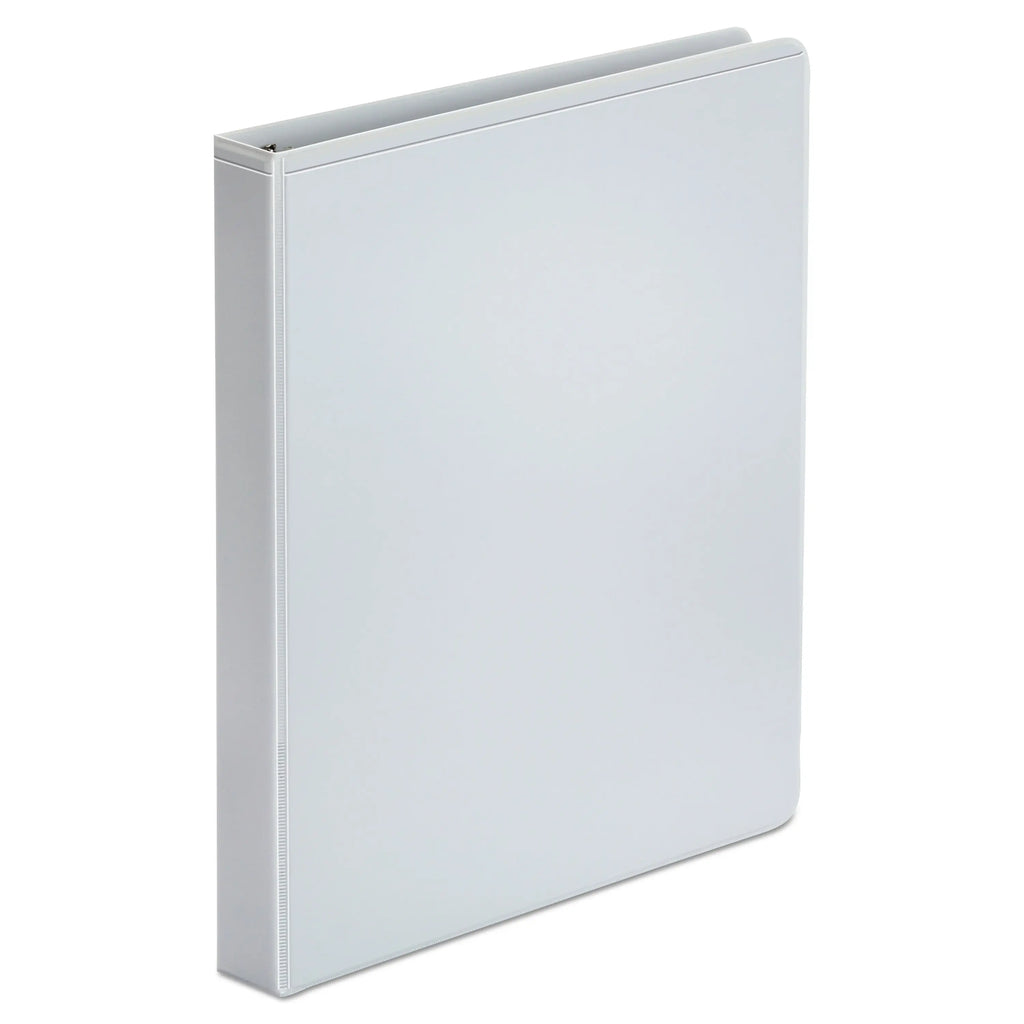 Economical view binder for light use. Non-glare transparent plastic overlays on front cover, back cover and spine for easy customization. Binder features back-mounted rings for added convenience. Two inside pockets provide extra storage for loose documents. Poly material is non-stick. Inserts, pockets and cover won't lift print.