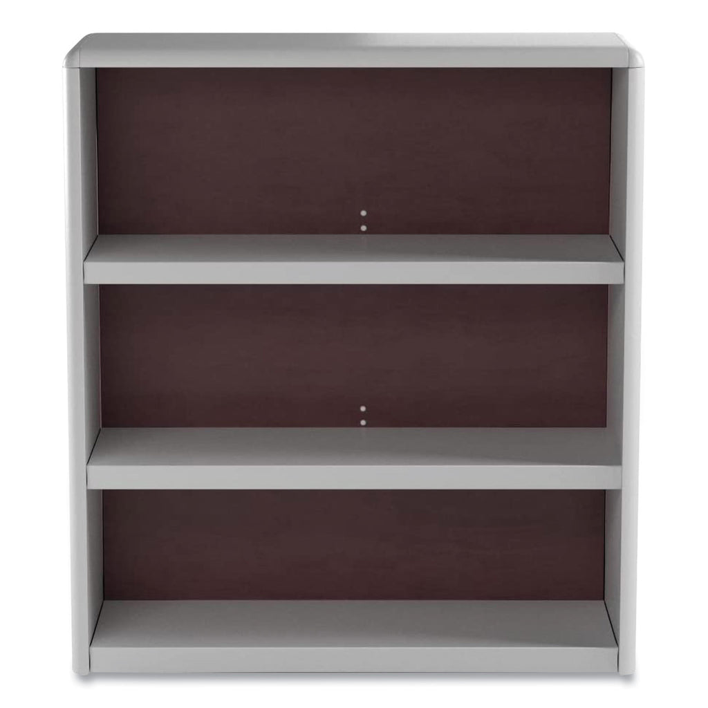 A workspace organizer with steel-constructed shelves and exterior. With a fiberboard backing, the bookshelf offers 12 deep bookshelves that can adjust in 1 increments during assembly. Plastic, snap-in radius corners provide speedy assembly. Fixed bottom and top shelves.