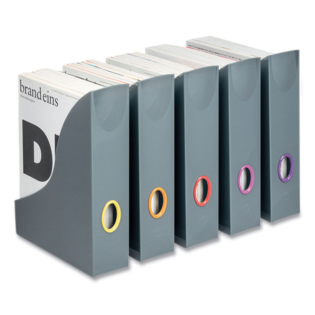 - Organize your files with this set of five multicolored magazine racks with vibrant grip holes, perfect for sorting office papers and files, magazines, brochures, catalogs, educational resources, journals, pamphlets and more.