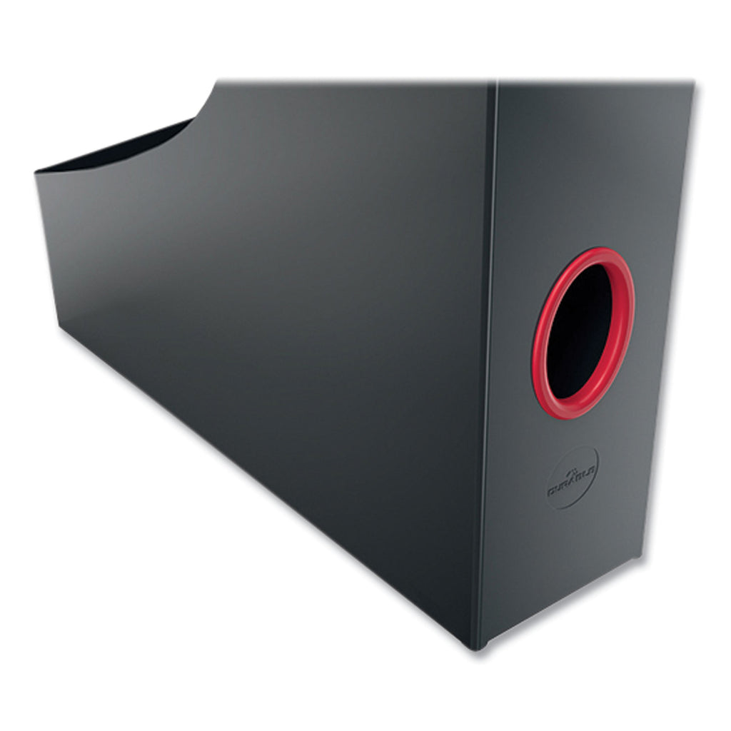 - Keep magazines, catalogs, brochures and more within reach with this sleek, space-saving file holder.