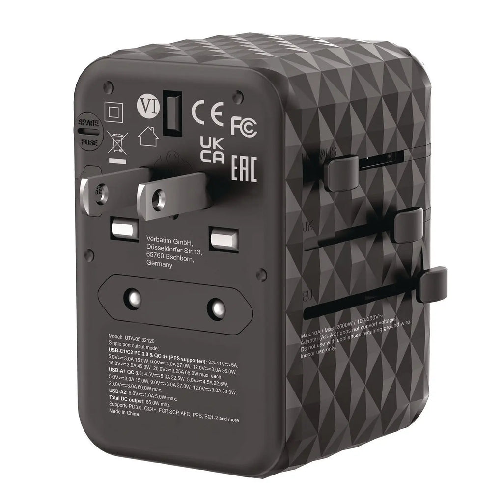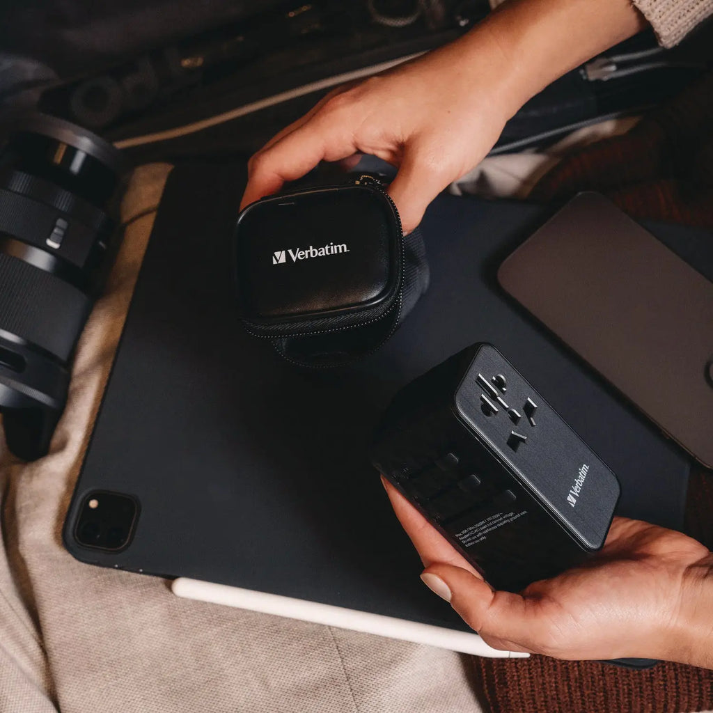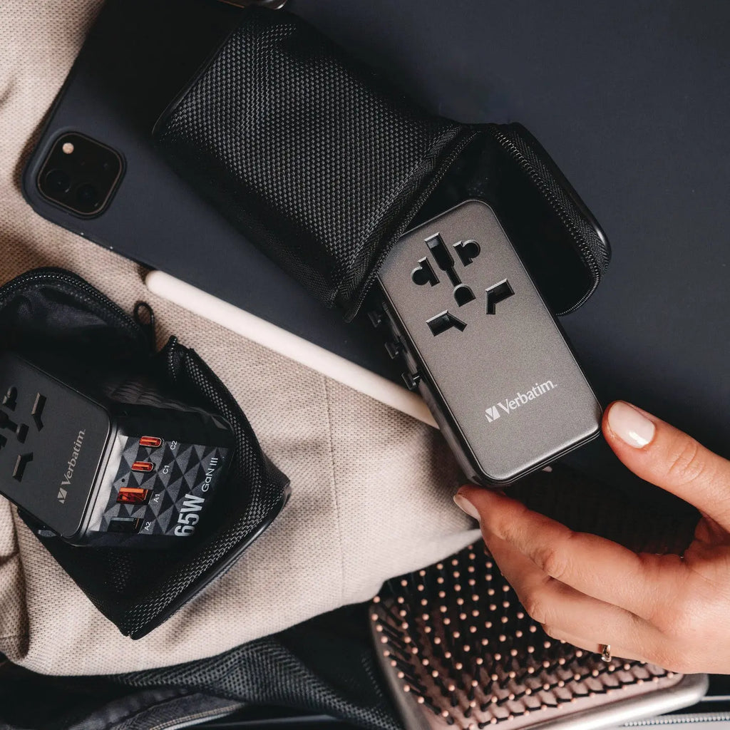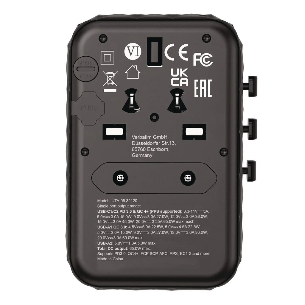 Compact and versatile solution for travelers. This 5-in-1 adapter allows simultaneous charging of five devices through AC and USB ports.